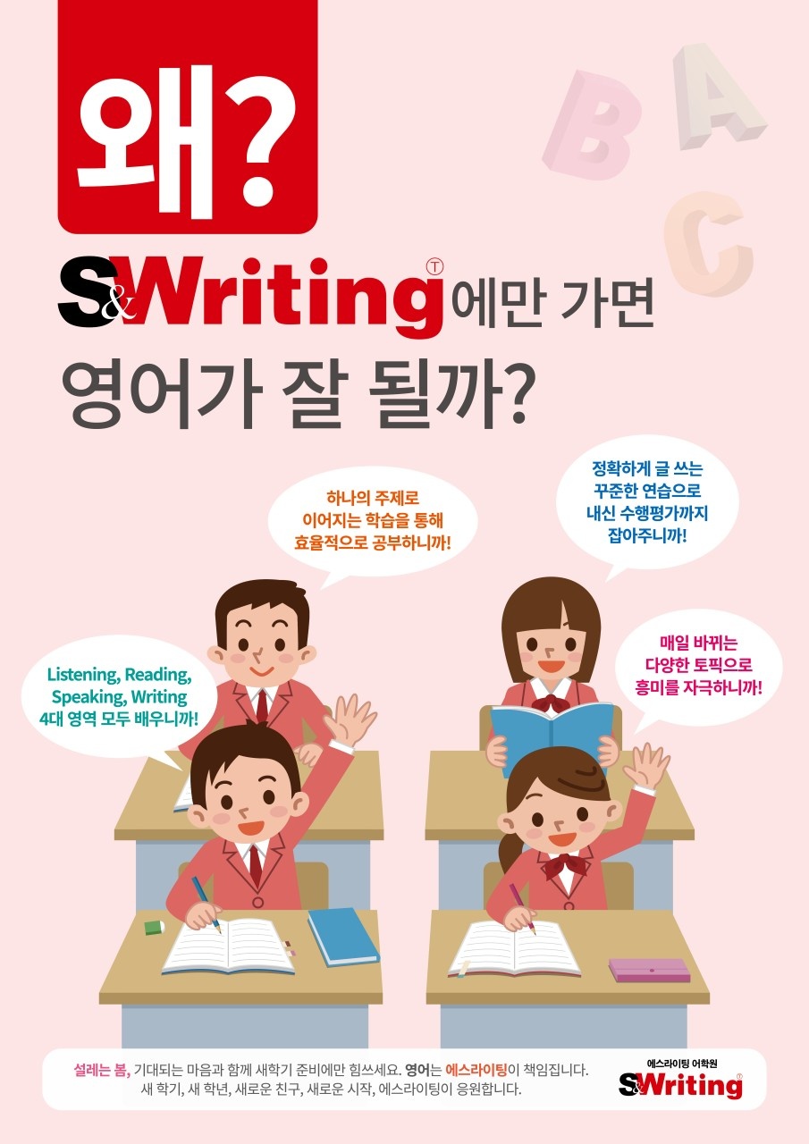 스터닝수학 에스라이팅어학원 일직캠퍼스 부원장 이진숙입니다. 우리 학원은 보통 초등 4학년부터... 개강안내 예비초4 영어(LV.3) 에스라이팅어학원 개강일: 12월 2일(화) 수업시간: 화·목 3:00~5:00PM...
