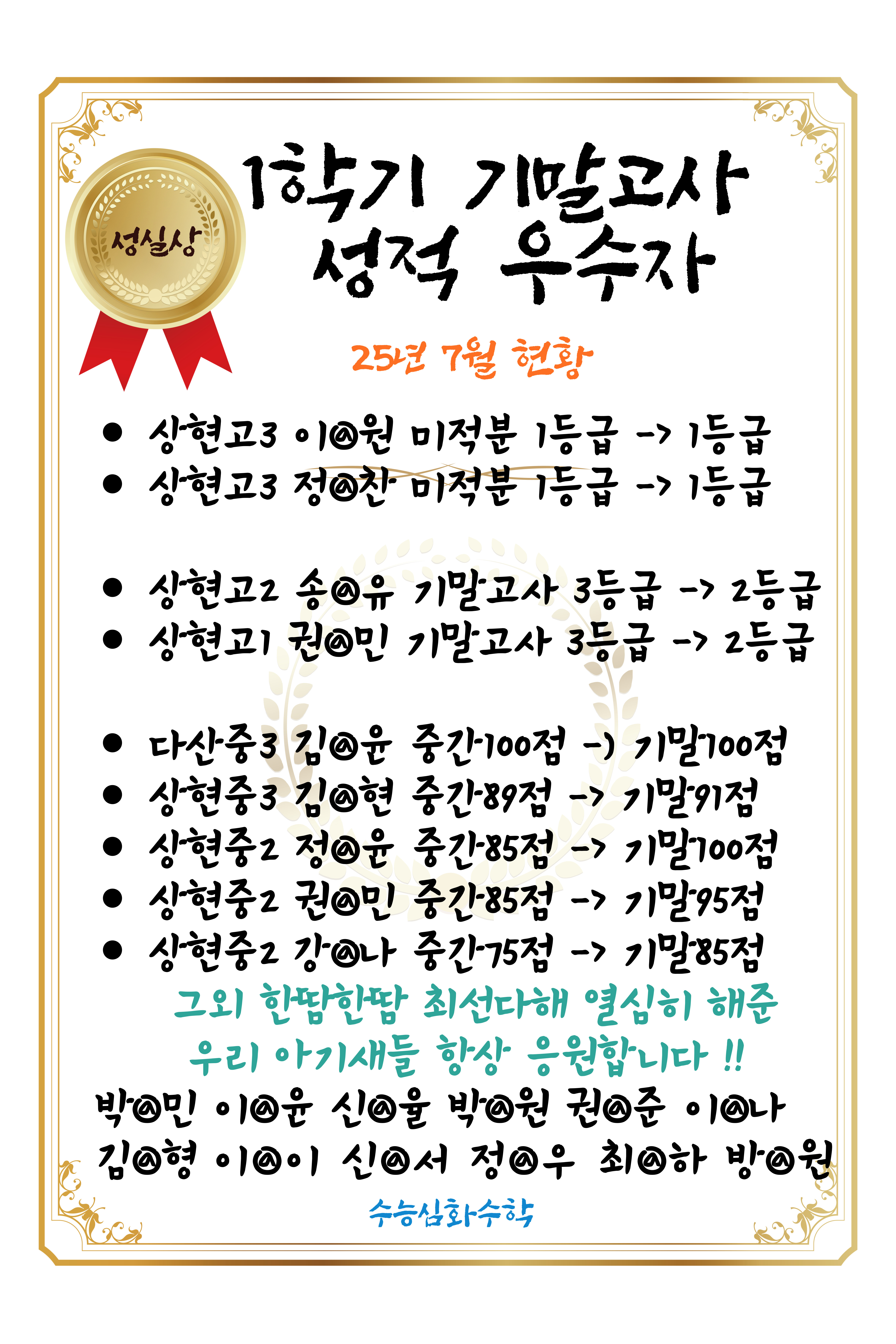 뿌리깊은 심화 수학, 상생 수학, 성보 수학, 세움 수학, 손일훈 수학, 수강 수학교습소, 수학 귀신, 수학 온, 수학을 말하다, 수학 프런티어, 신민경 수학, 아거 수학, 에이슬 수학, 올백 수학, 와이 수학, 웅 수학...