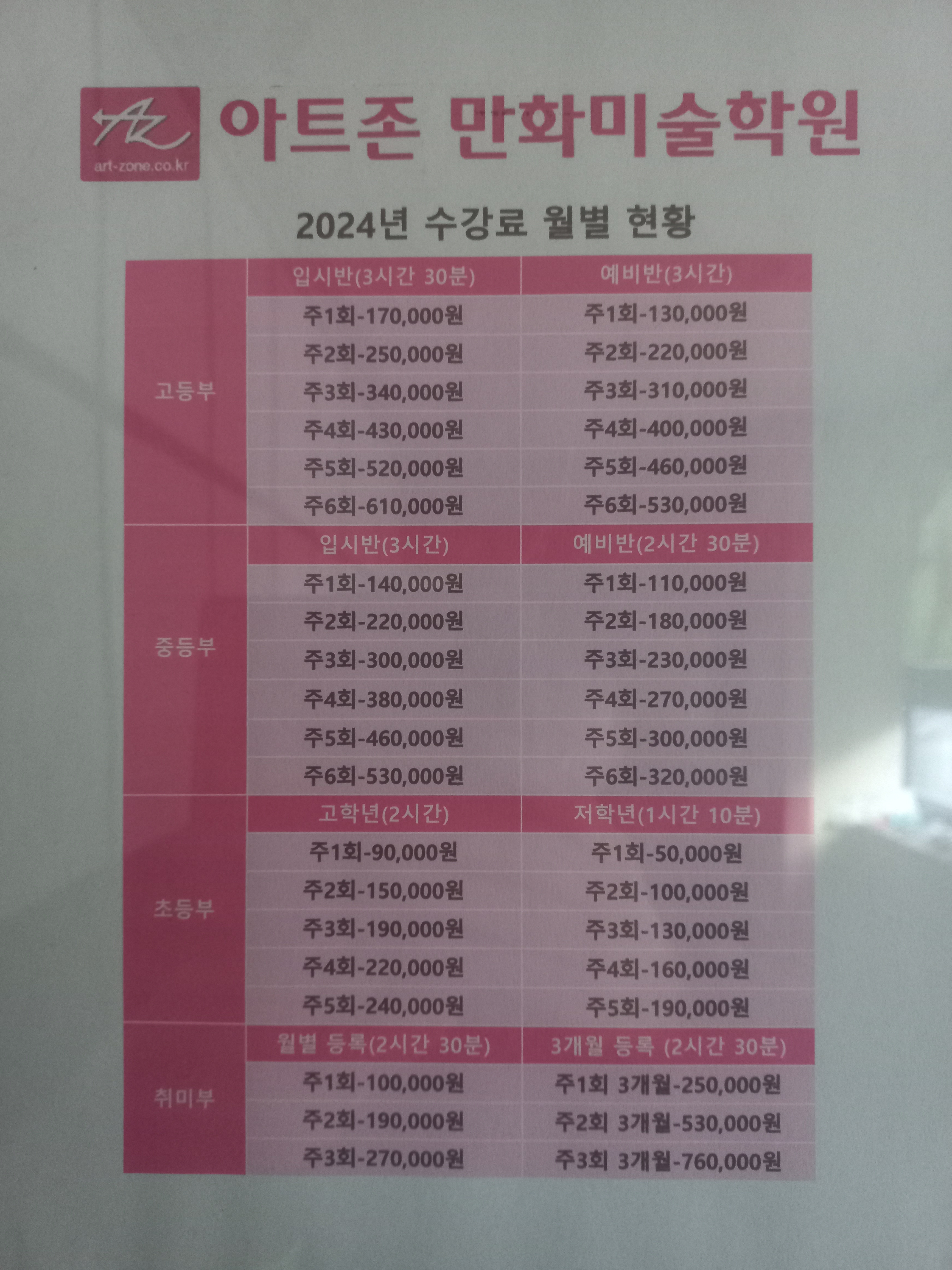 아트존만화미술학원 상세정보