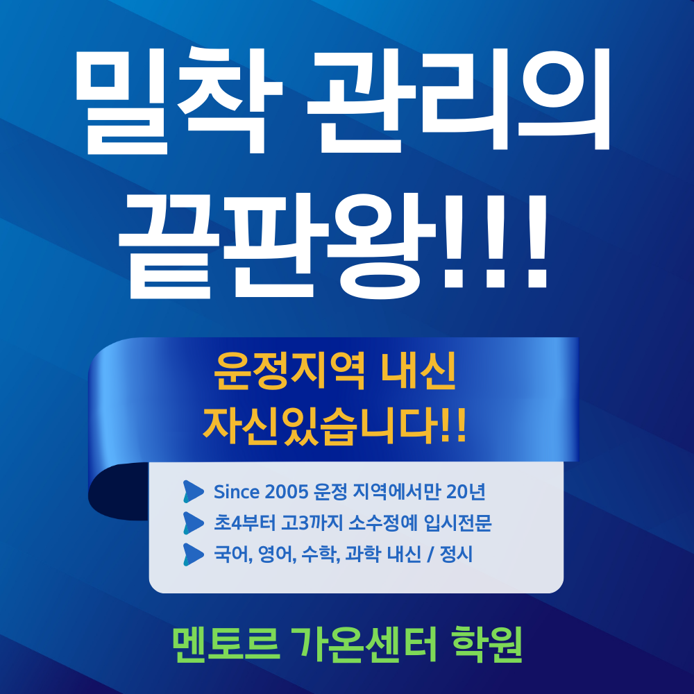 운정 중학생 수학학원 1:1 밀착 관리 멘토르