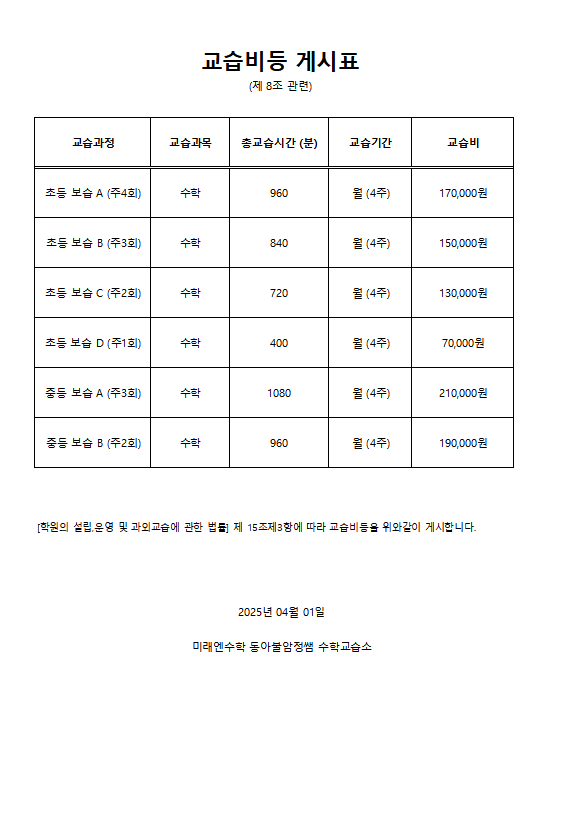 미래엔수학동아불암정쌤수학교습소 상세정보