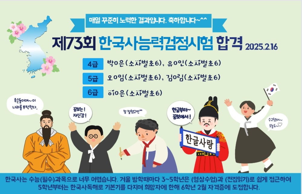 <3~6학년 대항전> ☆ 학년1등 : 4학년 (평균 93점) ☆ 전체1등 : 4학년 유○정 (평균99점) 2학기 기말고사를 잘 마쳤습니다^^ 조금씩 천천히라도 나아지고 있는 아이들을 보면 올 한 해도 참 잘 견뎌주었구나라는...
