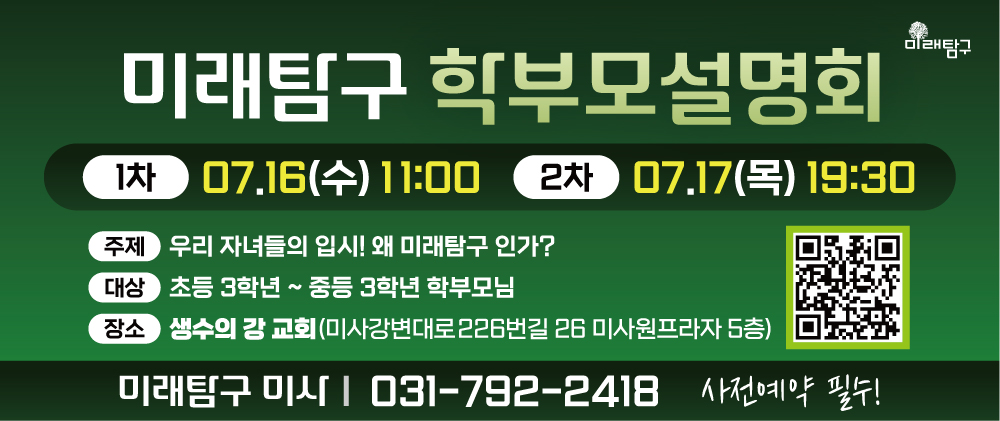 미사미래학원 예비고1(현 중3) 신입생의 기본 실력 및 성실함을 알고자 반배치 고사를 실시할 에정입니다. 일정 : 1차-11월 21일(금) 오후 6시 2차-11월 22일(토) 오전 11시 주소 : 경기도 하남시 미사...