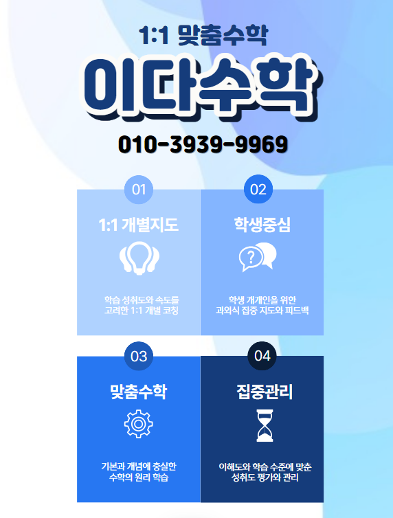 가오동수학학원 이다학원, “흔들리지 않는 고등수학 1등급 전략은?” (예비고1부터 고3까지, 성적이 오를 수 밖에 없는 단계별 학습법) 안녕하세요, 가오동에 입시의 든든한 파트너, 이다학원입니다. 새...