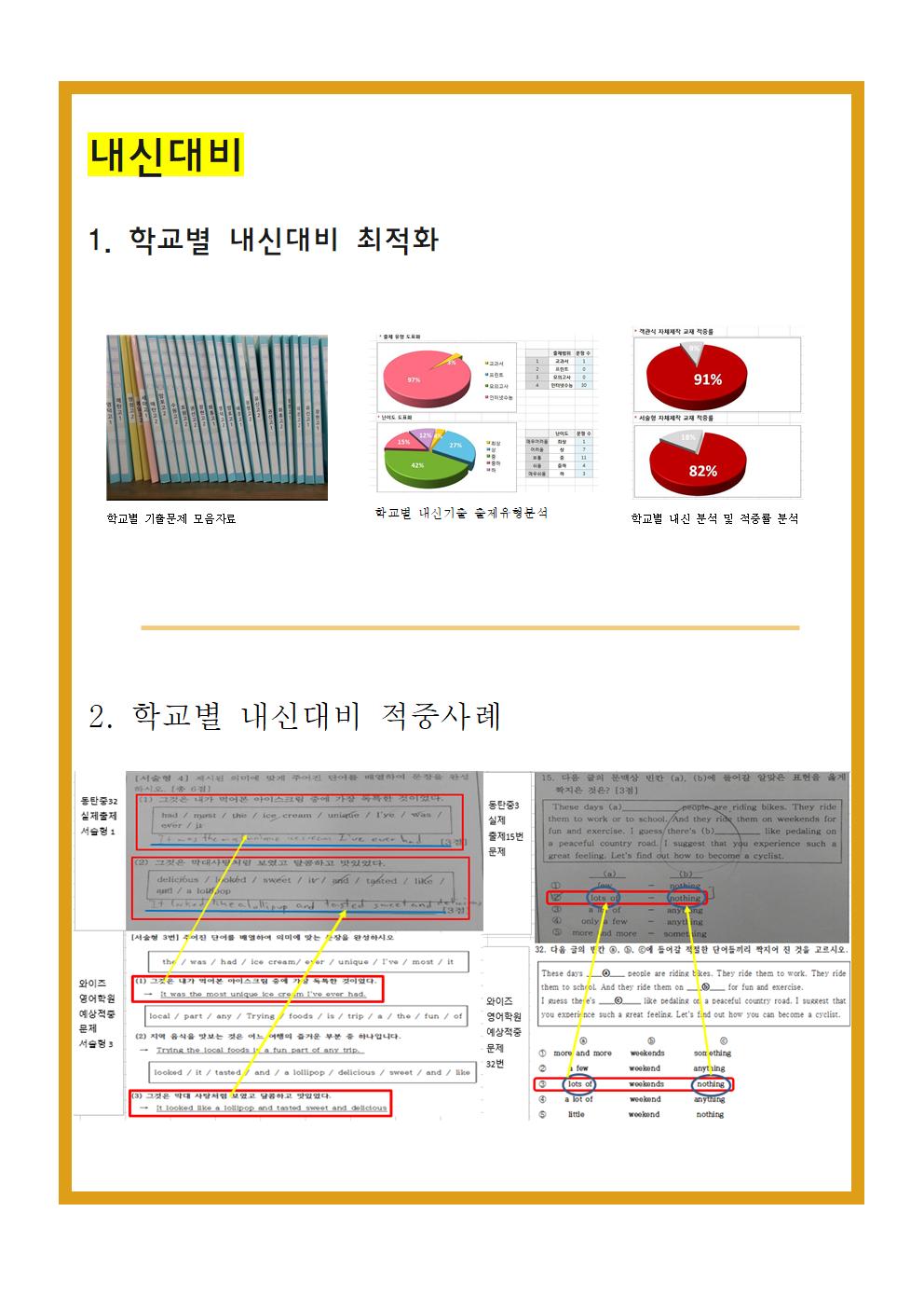 용성중학교 1~3학년 성취도 분석과 동남지구 3030 영어학원의...