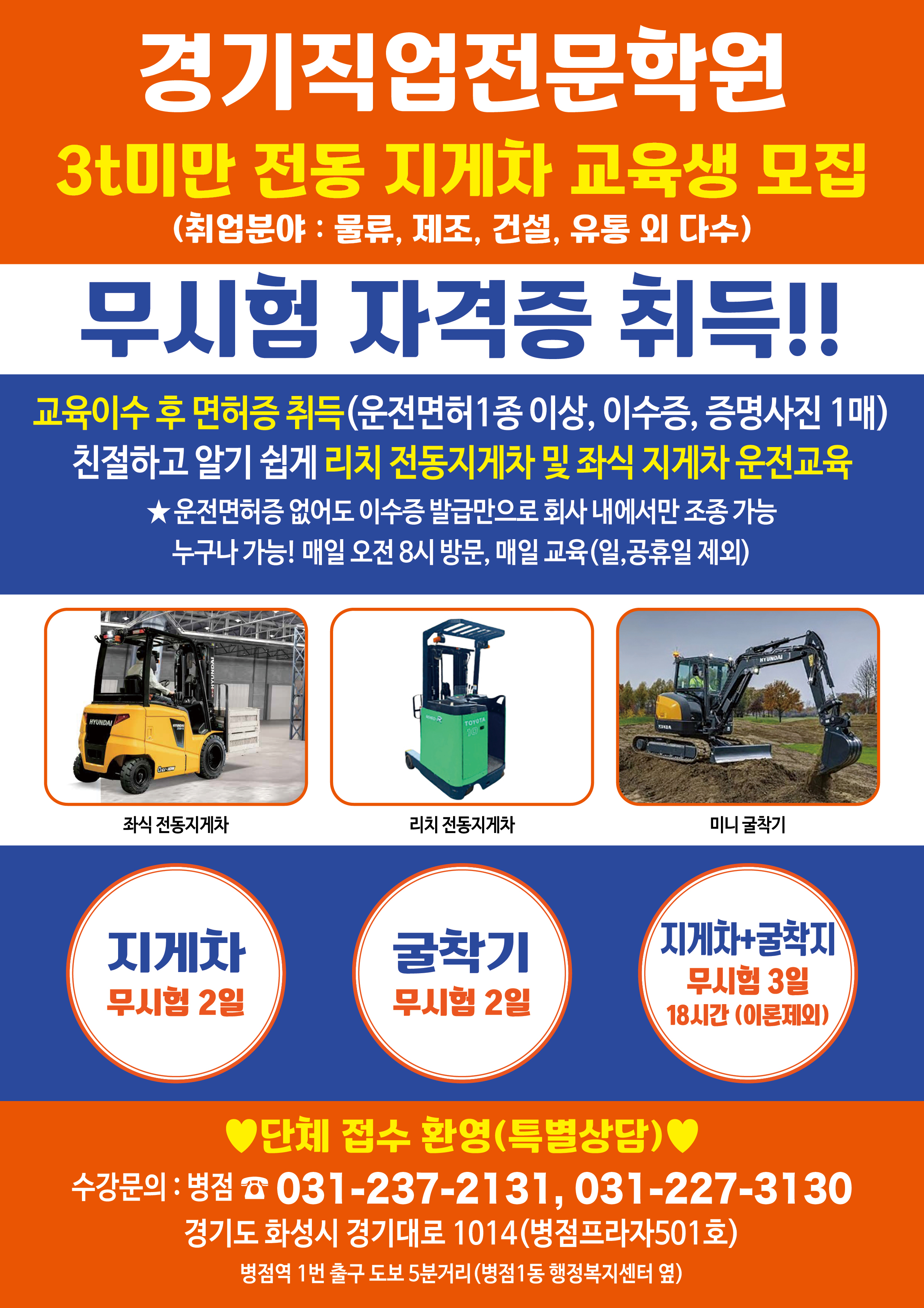 수풍전문학원 등도 괜찮은 선택지고 병점으로 되어있지만 막상 훈련은 석포리 (향남부근) 가서 훈련받았습니다. 가게이름 : 경기직업전문학원 가게주소 : 경기 화성시 경기대로 1014 501호 영업시간...