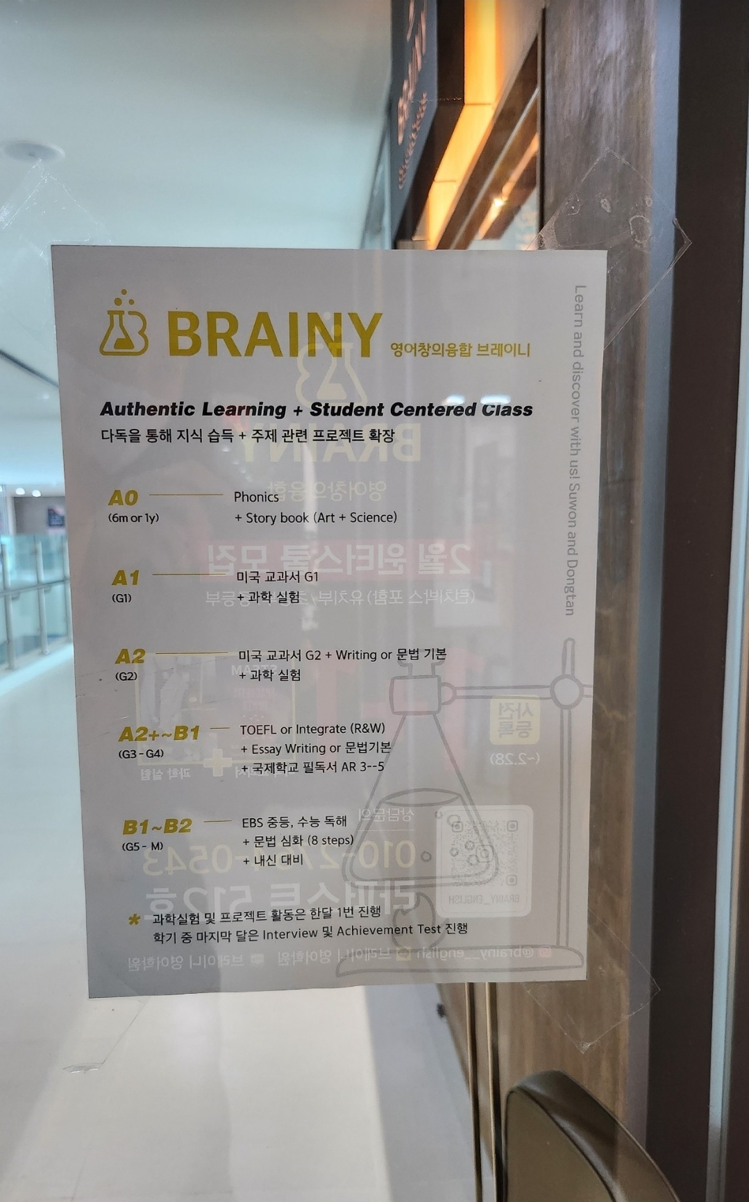 사고력수학 수업도 함께 진행하는 곳. 작년부터 영어로 과학수업 (재밌는 실험 위주 / 놀이)하는 학원을 찾고 있었는데, 마침 원하던 수업이 있는 곳이라 다녀와봤다. 목차 브레이니 영어수학 본원 기본정보...