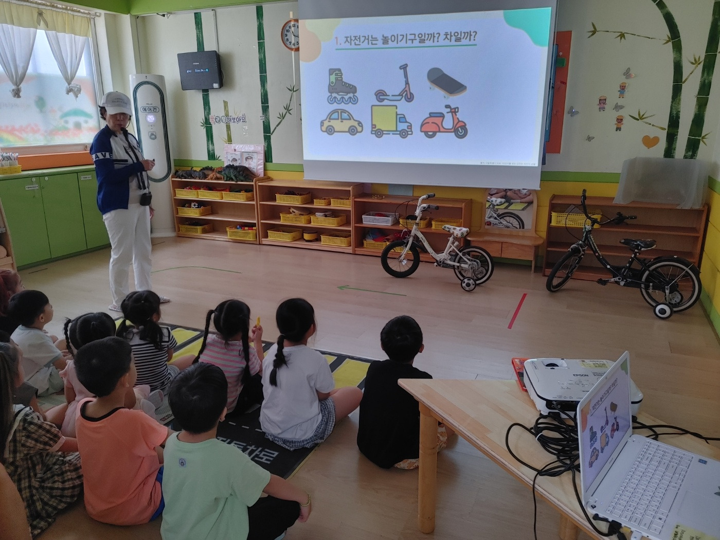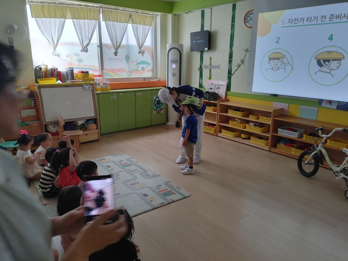 세화 어린이집 마지막 등원날이라 아쉬운 마음에 그동안 사랑해주신 바다반 선생님들과도 한 컷. 그런데 마침 하원시간이라 어린이 방송이 틀어져 있어서 사진 찍는 내내 예찬이 눈동자는 카메라가 아니고 TV로...