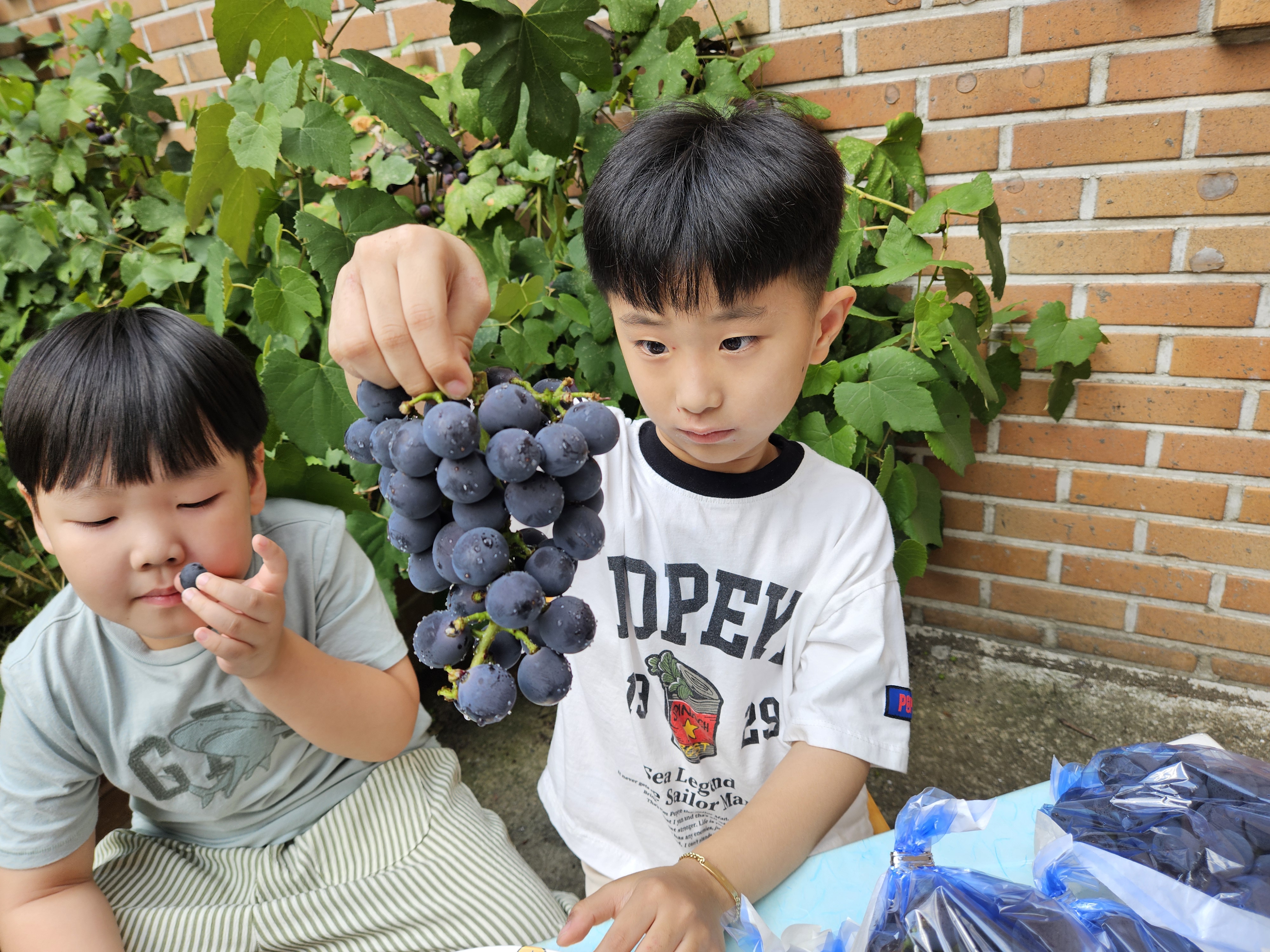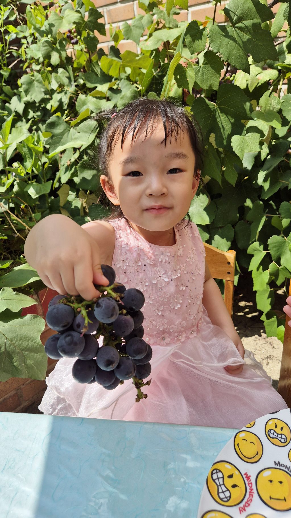 2025년 9월 18일 목 출산 후 3년 196일, 1290일째 오늘은 에덴 어린이집에서 가을 소풍으로 가평에 있는 포도... 포도 염색까지 체험하는 어린이들! 포도는 먹는 것만이 아니라 포도색 염색까지 한다는 체험! 이런...
