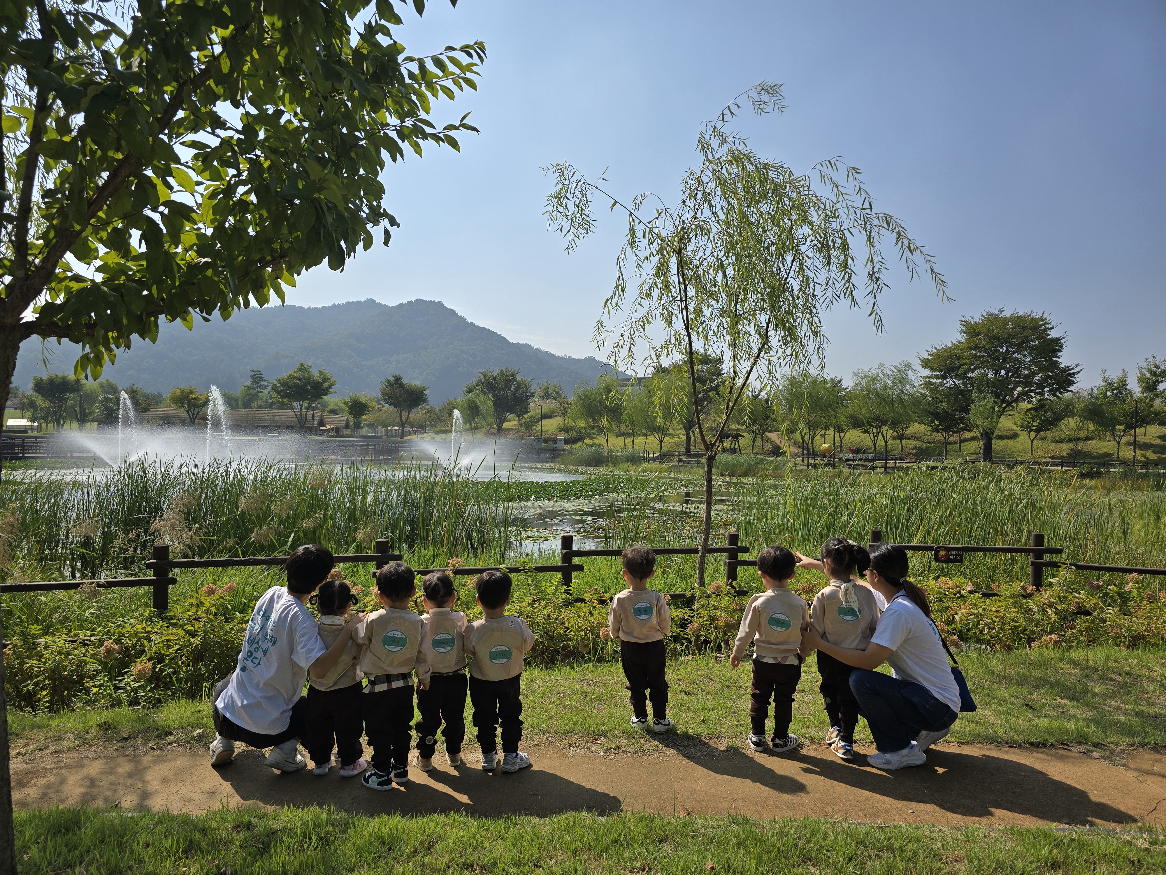행복이는 열이 금방 떨어진듯하여 어린이집에 보냈고 워낙 고열이었던 축복이는 내가 데리고 있었다.... 오는 길에 어린이 놀이터에 들러 좀 놀았다. 아파트를 크게 도는데 분수랑 인공폭포가 있네??? 두 아이...