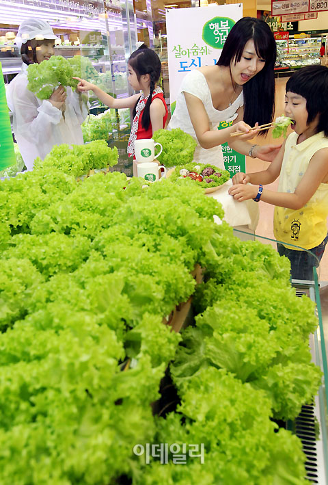 싱싱한 유기농 채소들이 잘 자라고 있었어요 쌈 채소 수확할 바구니 하나씩 손에 들고 아이들은 선생님의 설명에 초 집 중!! 자~ 뜯어보렴 엄마랑 선생님 드실 거니 예쁘게 잘 뜯어줘~ 상추 수확 인증샷!! 저희들...