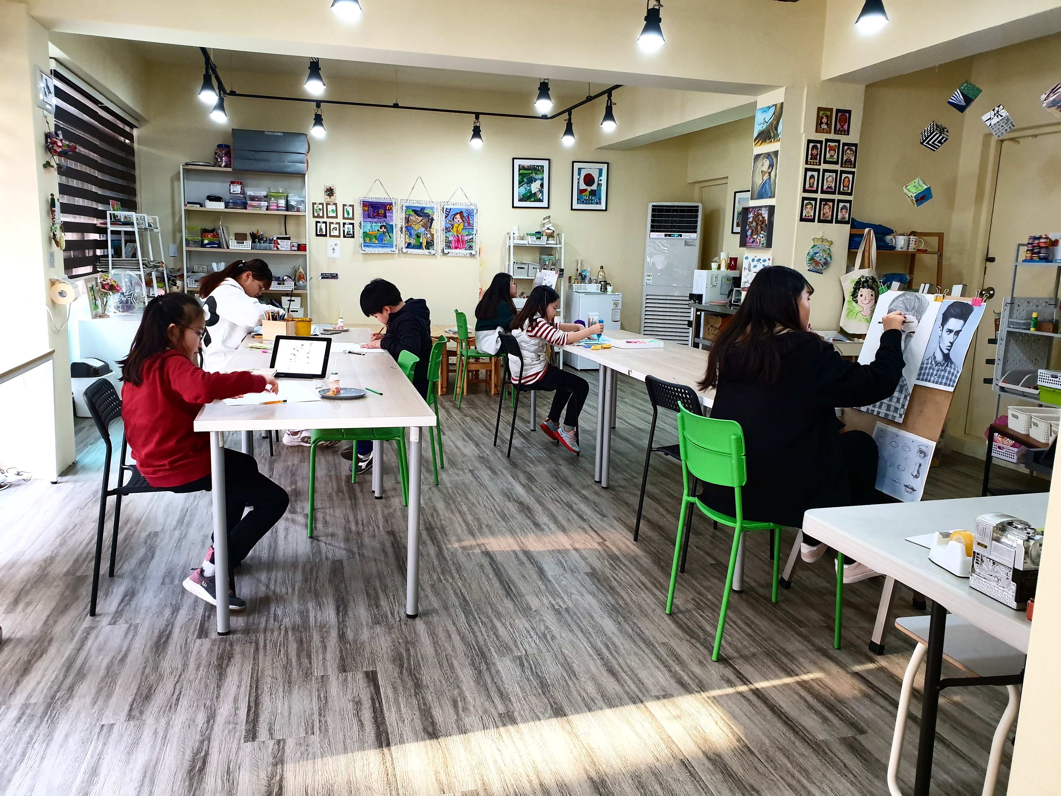 그림이야기 미술교습소에서 각자의 진도에 맞춘 그림을...