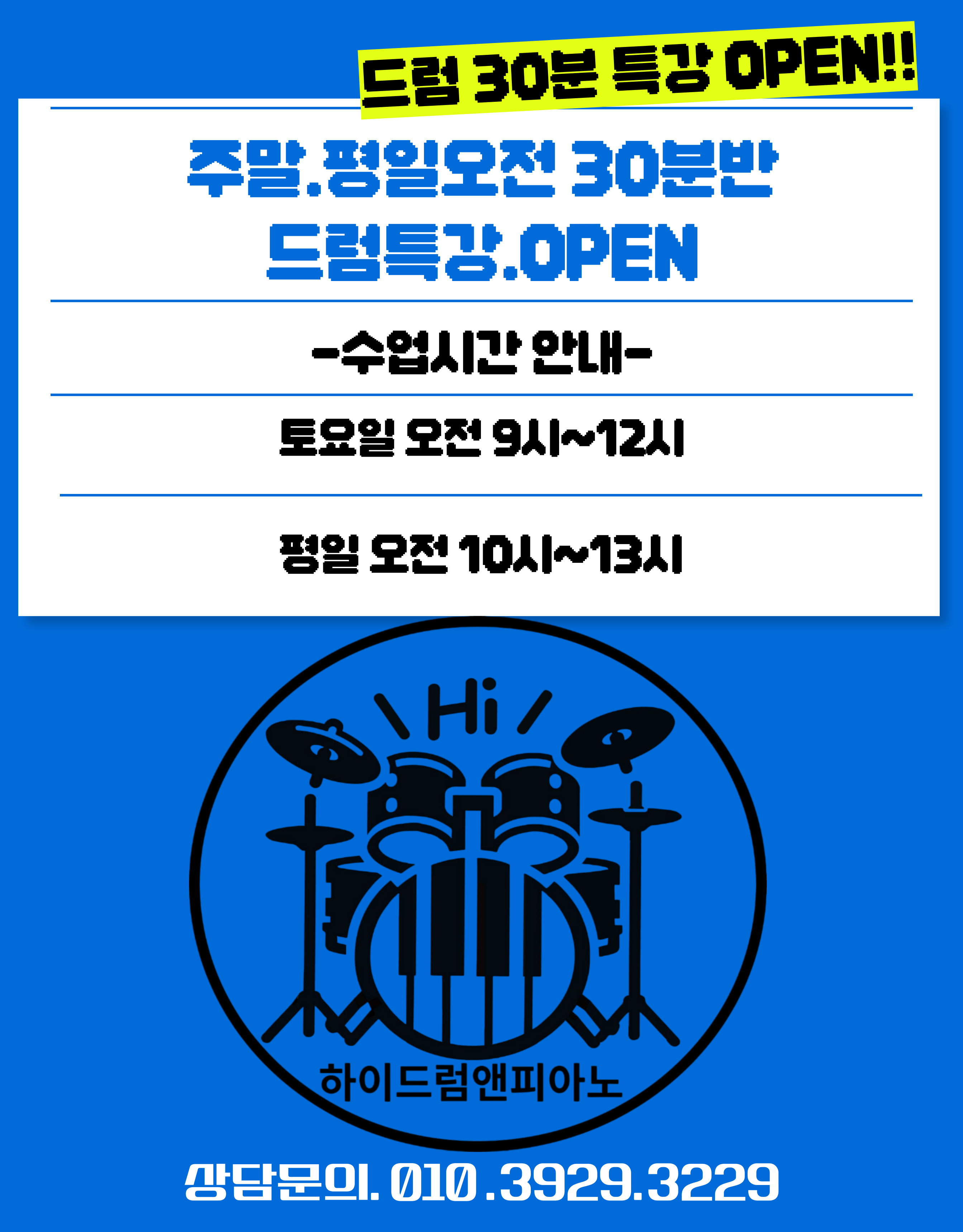 거예요 하이피아노앤드럼에서는 음악을 배움과 동시에 즐거움도 함께 느낄 수 있어서 너무 좋습니다 드럼이든 피아노든 시작하고 싶으신 분들께 정말 추천드려요 문의는 언제나 가능하다고 하니 관심 있으신...