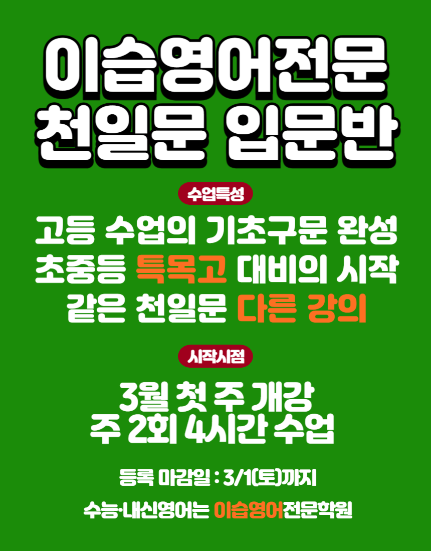 초등 중등 고등 영어학원 수학학원 내신대비전문 · 2025.07.29