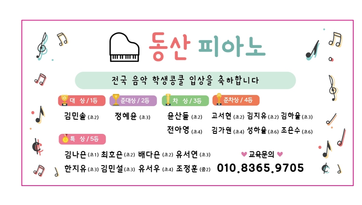 효성동에서 검증된 높은 교육수준의 동산음악학원