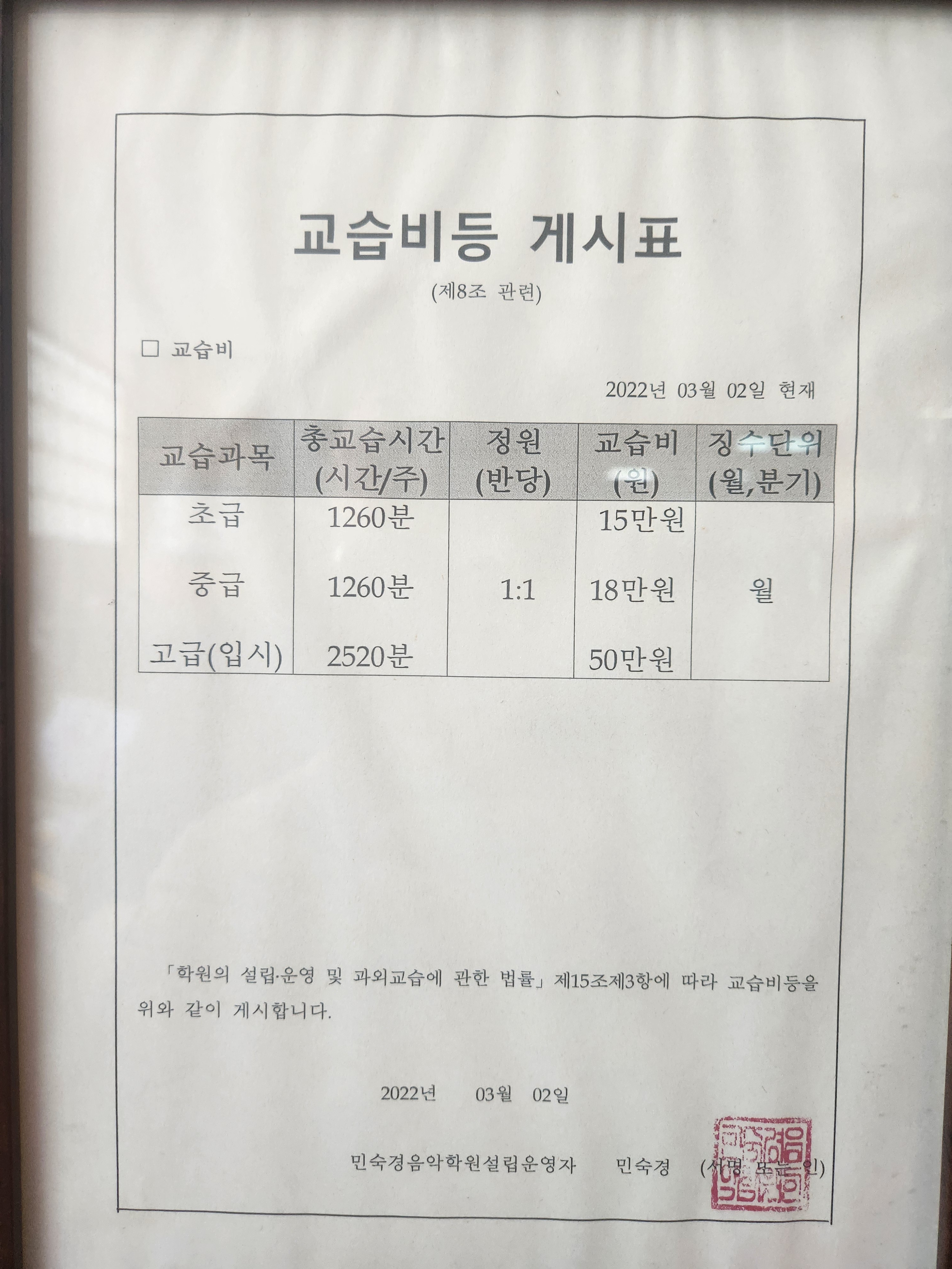 민솔음악학원 상세정보