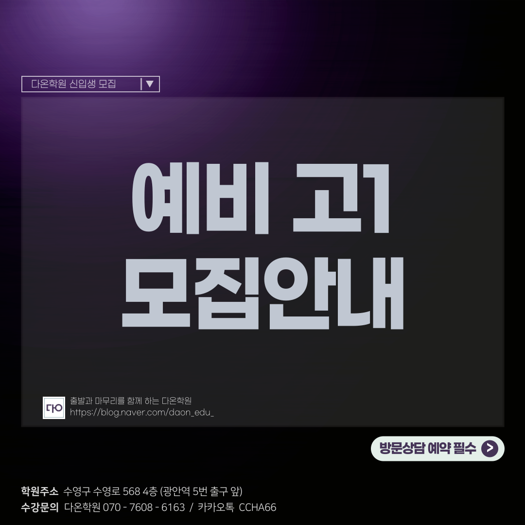 [수영구 광안동 다온학원] 프리미엄 중등 종합관리, 종합학원을...