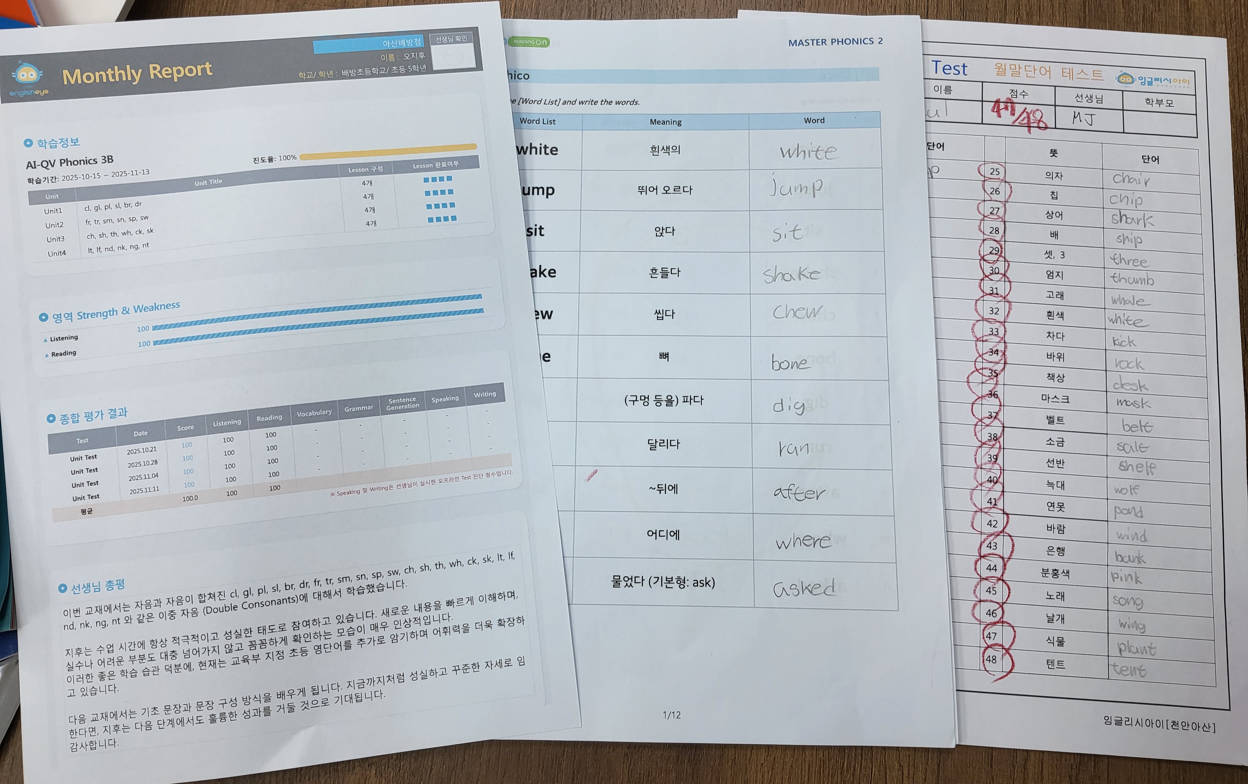 선생님의 총평을 통해 한 달여의 학습기간 동안 잘 한것과 다소 아쉬웠던 점을 솔직담백하게 알 수 있습니다 배방초등영어학원 잉글리시아이 아산배방점 상담문의는 & & - - - #배방초등...