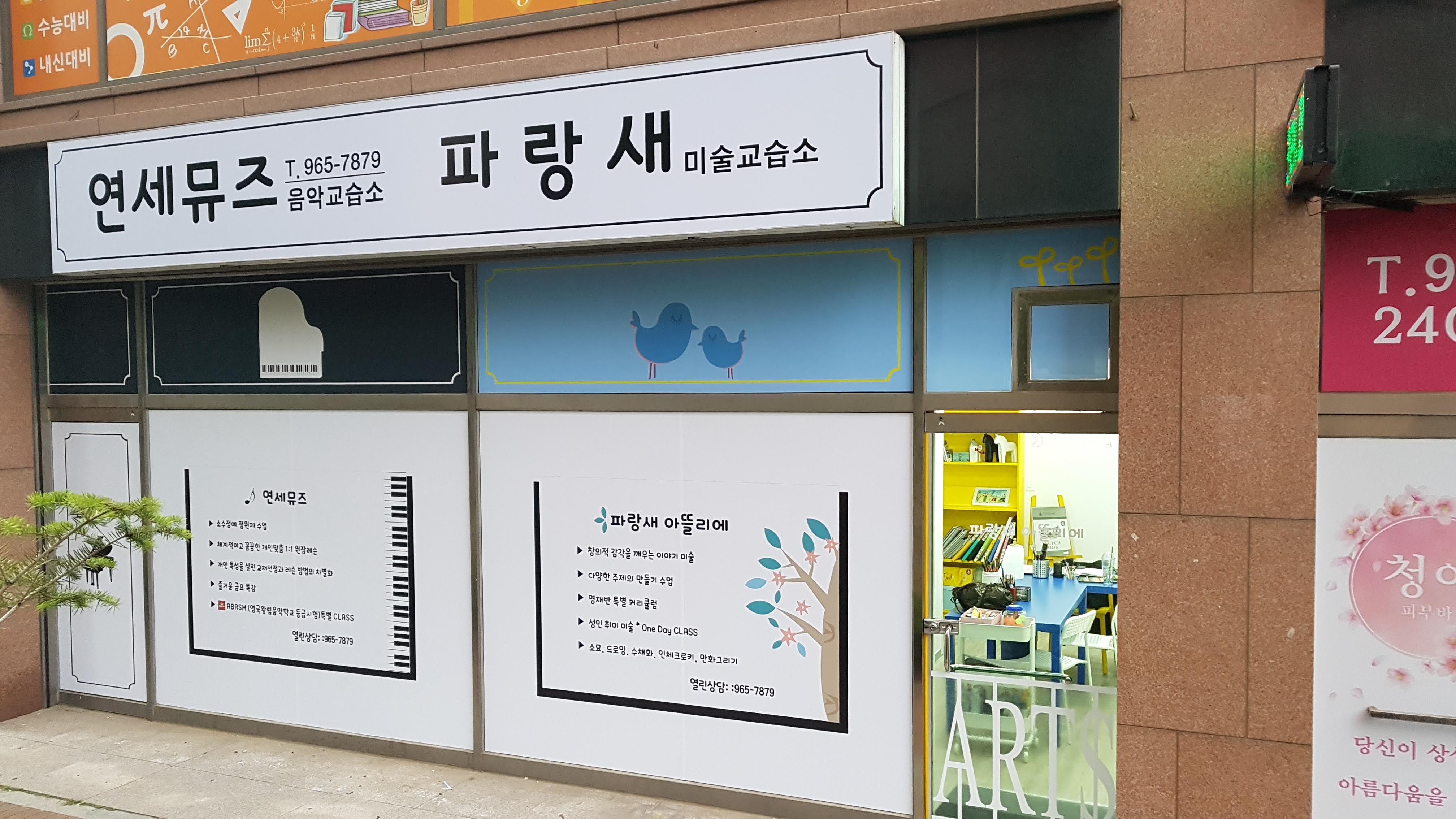 연세뮤즈 음악 교습소입니다. 저희 학원은 피아노와 미술을 전공한 엄마와 딸이 사랑으로 가르치는... 주 1회 드럼 수업을 무료로 제공하며, 파랑새 미술 수업과 함께 등록하시면 피아노 수업료에서 1만원을...