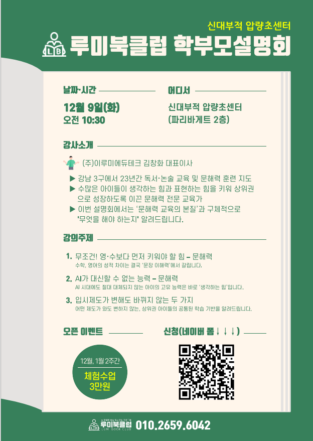 곧 있을 독서능력자격 검정 소식을 끝으로 '리드인' 삼봉점 포스팅을 마칠까 합니다. 자세한 사항은 리드인 독서논술 삼봉점 블로그를 참고하세요 ↓↓↓ [완주 삼봉지구 가볼만한 곳] 독서논술 학원 추천...