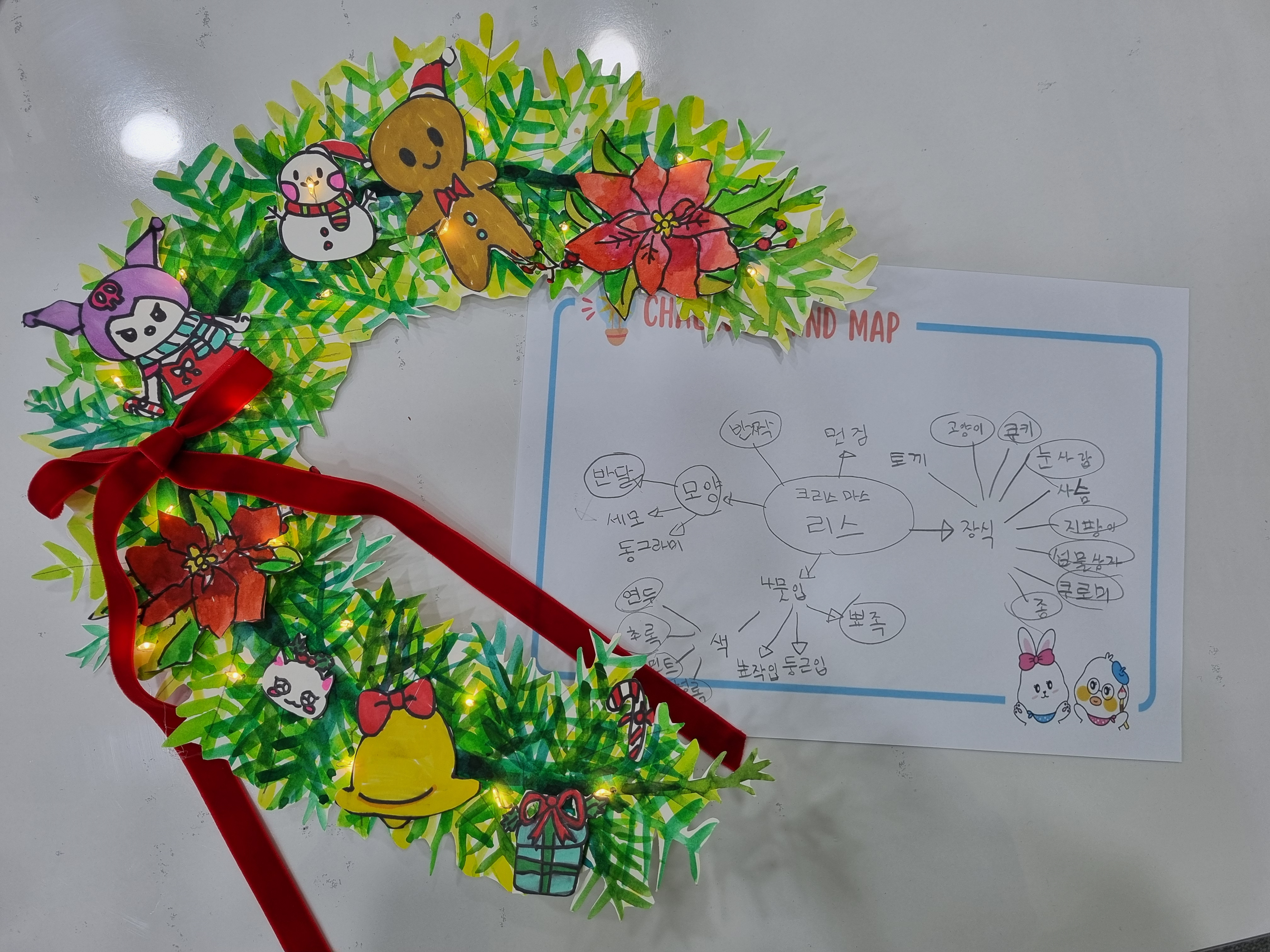 여수 죽림에도 아동 미술 학원이 생겼어요 !! 여수 채화미술학원 (같이 금요일 수업 들을 친구~?)... 여수 채화미술학원 내부 들어가자마자 학원안에 대형트리가 있어 크리스마스 느낌이 물씬 났어요 강의실은...