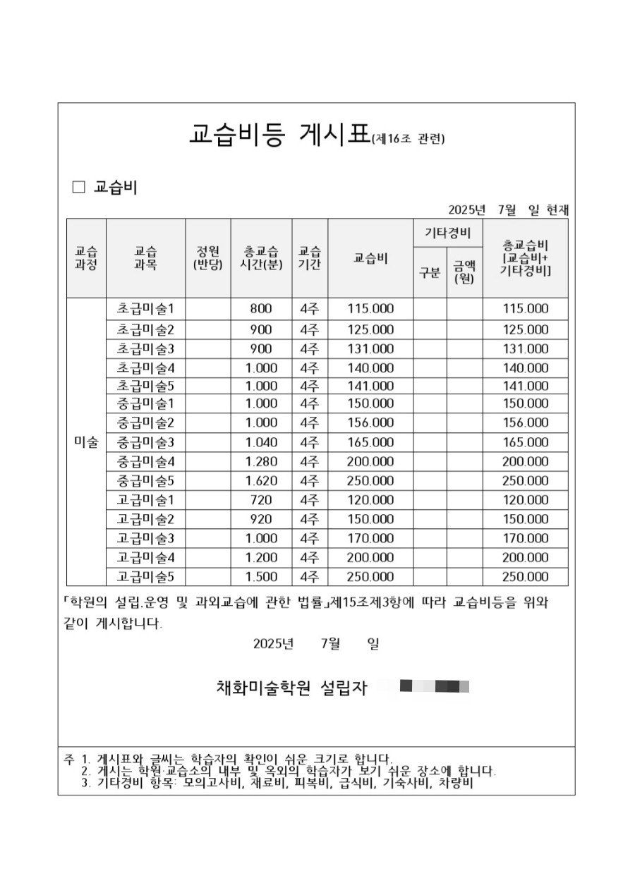 채화미술학원 상세정보