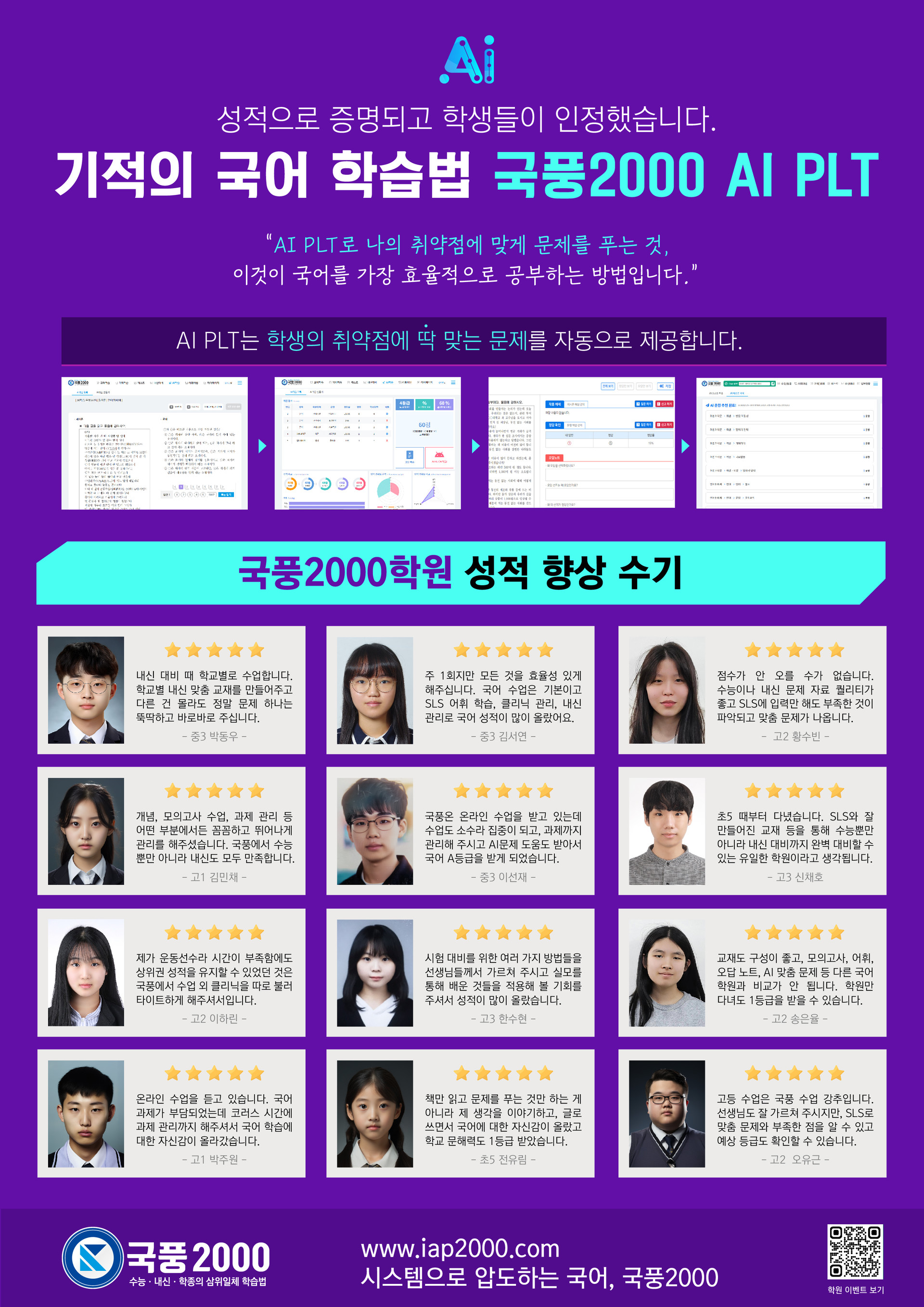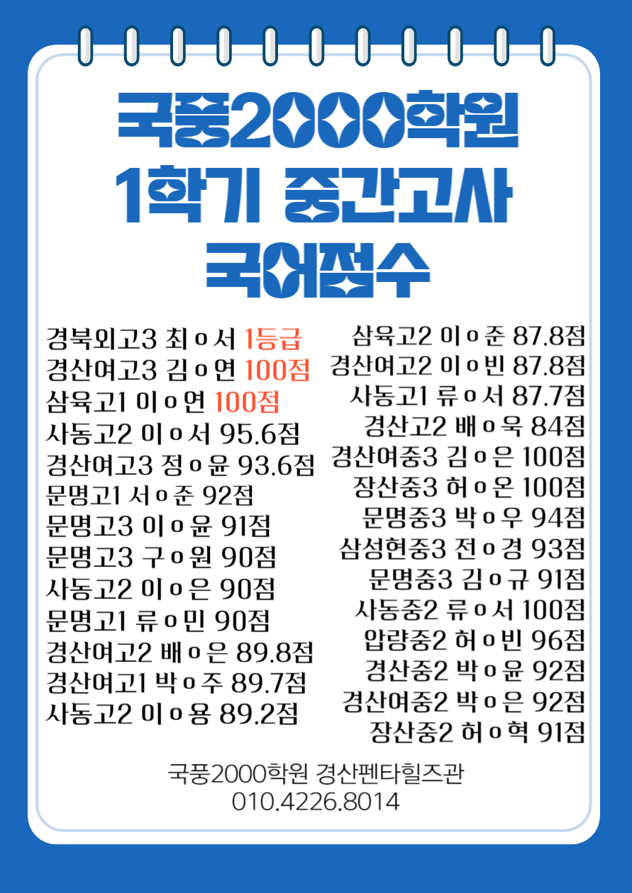 구월국풍2000 성적우수자 구월동 국풍2000학원의 두 가지 핵심 교육 프로그램 Q: 그럼 구월동 국풍학원에서는 어떤 프로그램들이 아이들에게 도움이 되나요? 두 가지 핵심 프로그램에 대해 말씀해 주세요. 원장님...