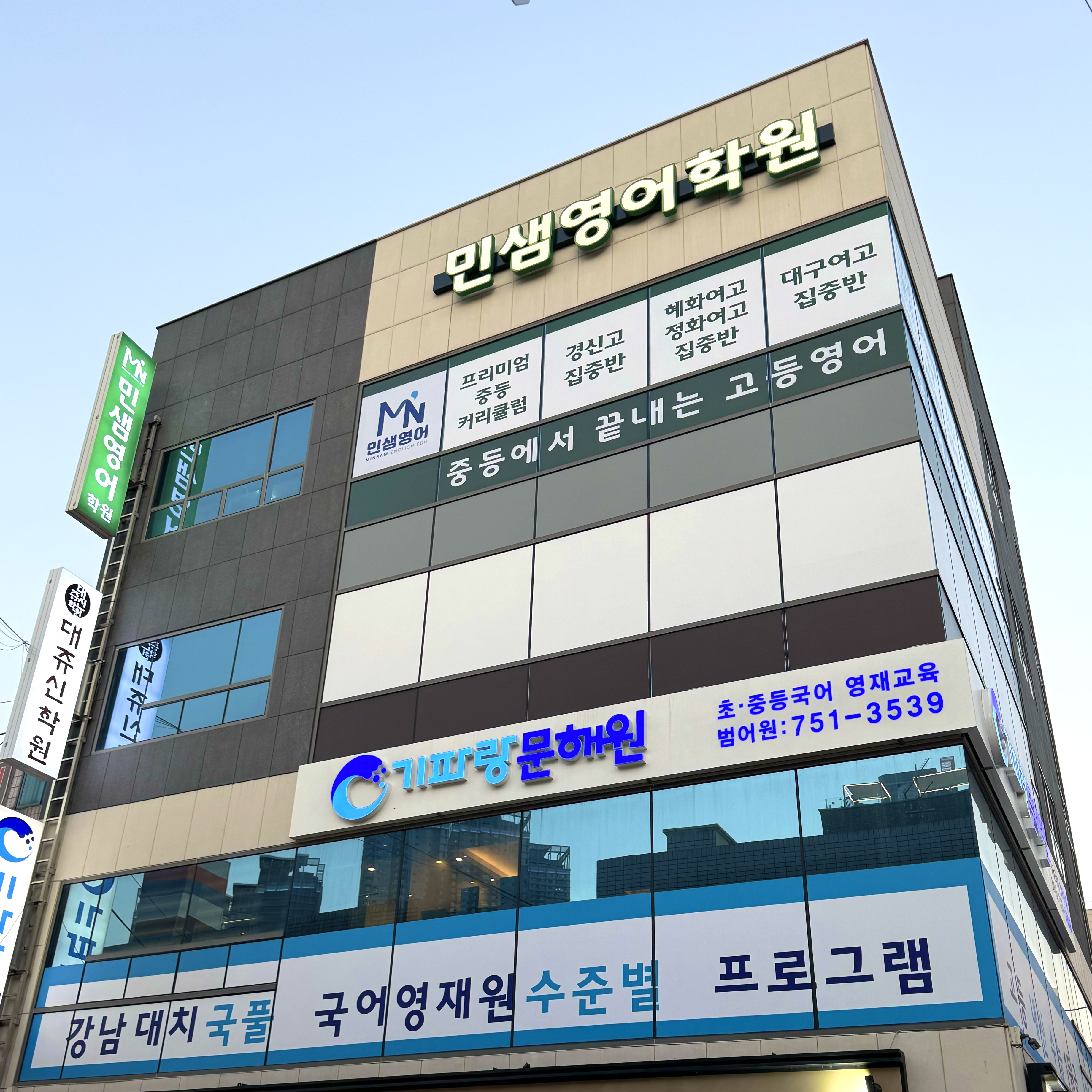 주는곳 민샘영어에 대해 소개해드릴게요 학원에 들어서는 순간, 밝고 쾌적하며 전문적인 분위기가... 우리 아이의 영어 성적과 실력을 한 단계 도약시키고 싶다면, 민샘영어 학원에 꼭 상담받아보시길 바랍니다!