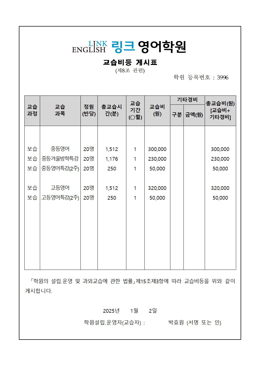 링크영어학원 상세정보