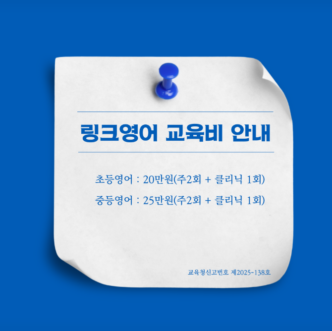 — 밝고 안전한 분위기에서 시작되는 아이들의 언어 성장 안녕하세요, 링크영어학원입니다 :) 아이들이 영어를 시작할 때 가장 먼저 부딪히는 것은 ‘단어’도 ‘문법’도 아닙니다. 바로 두려움이에요. 말을 잘...