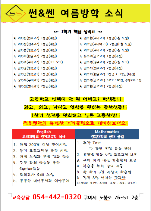 썬영어쎈수학도봉학원 상세정보
