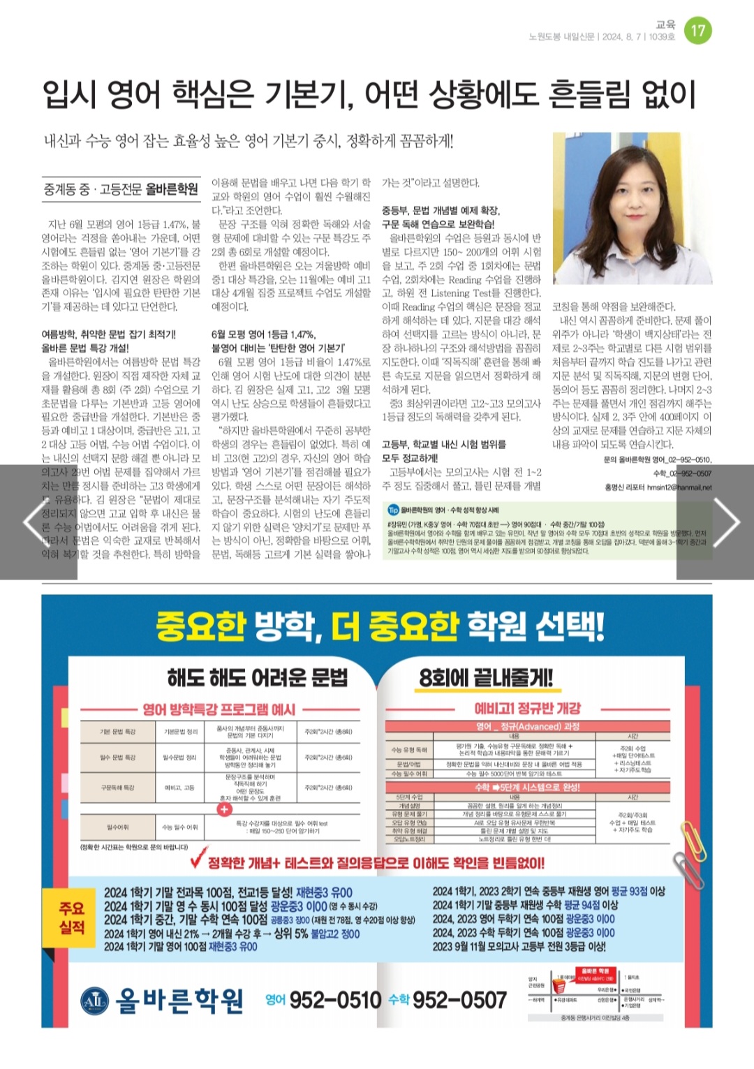모의고사와 사고력 테스트 결과와 함께 취합/분석하여 개별 학생에게 맞는 학습 솔루션과 올바른 로드맵을 안내드립니다. 예비고1 국어학원 국어의샘 / 홍천고, 신봉고 지망 학생 대상 국어의 샘 예비고1 2학기...