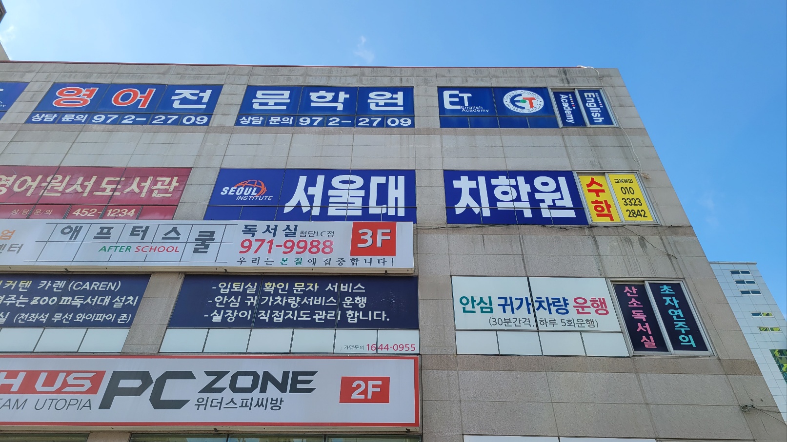 그러면 사진과 함께 학원을 둘러보실까요? 서울대치학원 간판은 하망캠퍼스와 동일한 컨셉입니다만, 가흥캠퍼스란 것을 표기하여 혼동의 염려가 없게 하였습니다. 바로 아래 1층에는 마트가 있어서 간식...