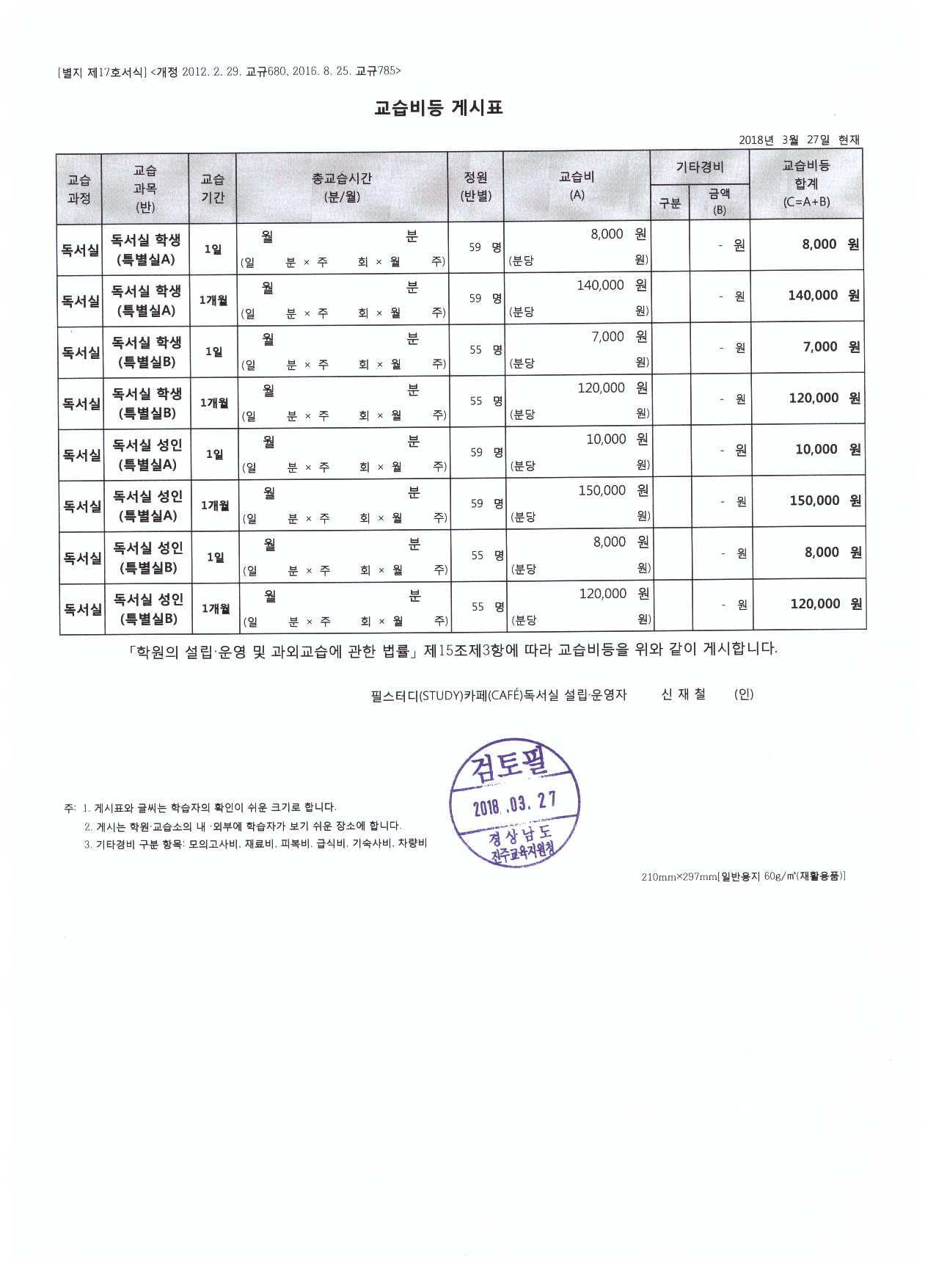 필스터디(STUDY)카페(CAFE)독서실 상세정보