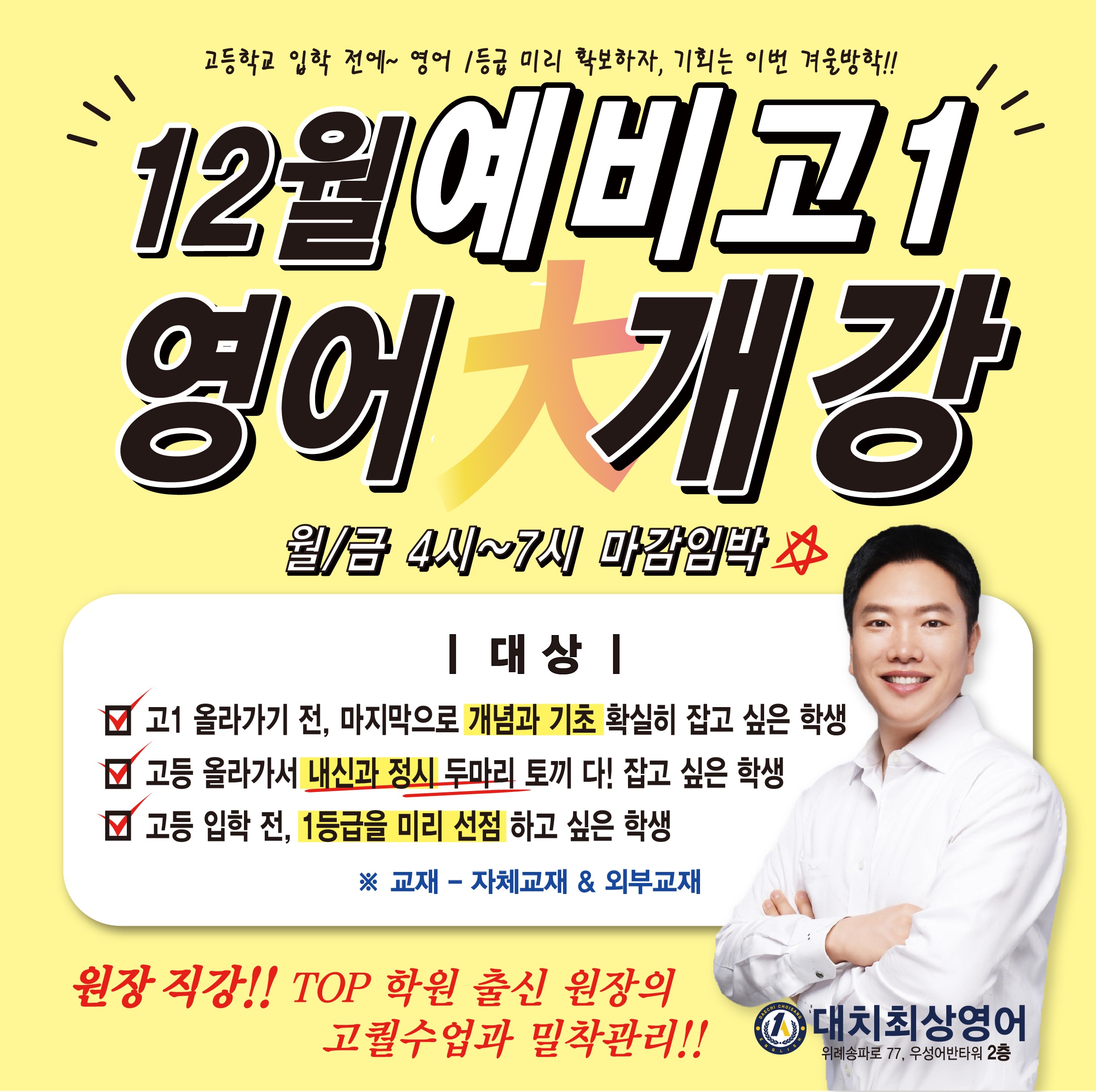 위례 고등영어 전문 대치최상영어교습소 원장 소개