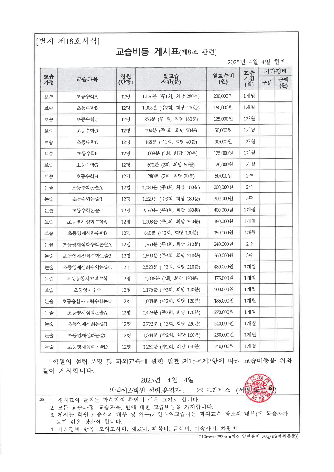 CMS 평촌영재관 학원운영등록증 게시