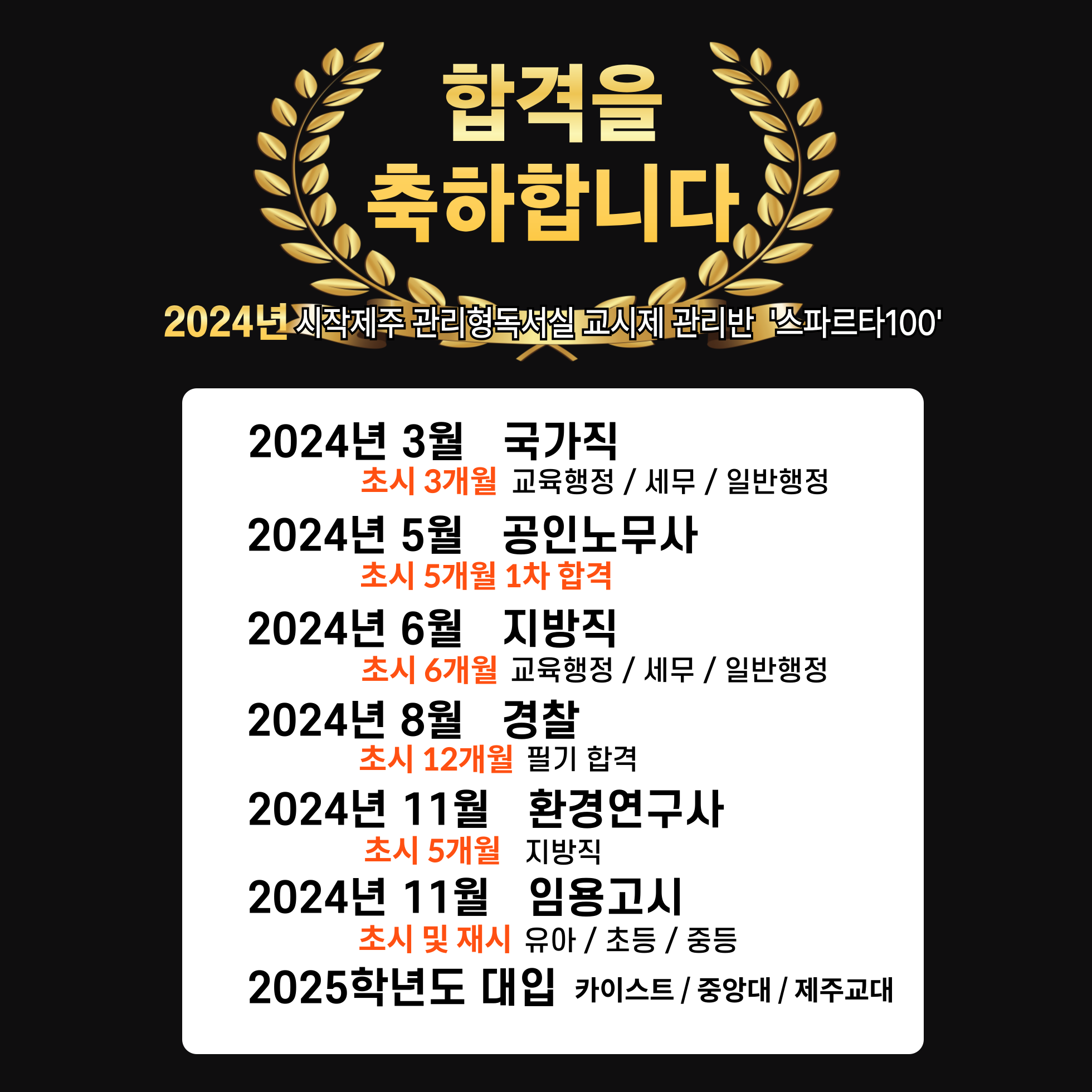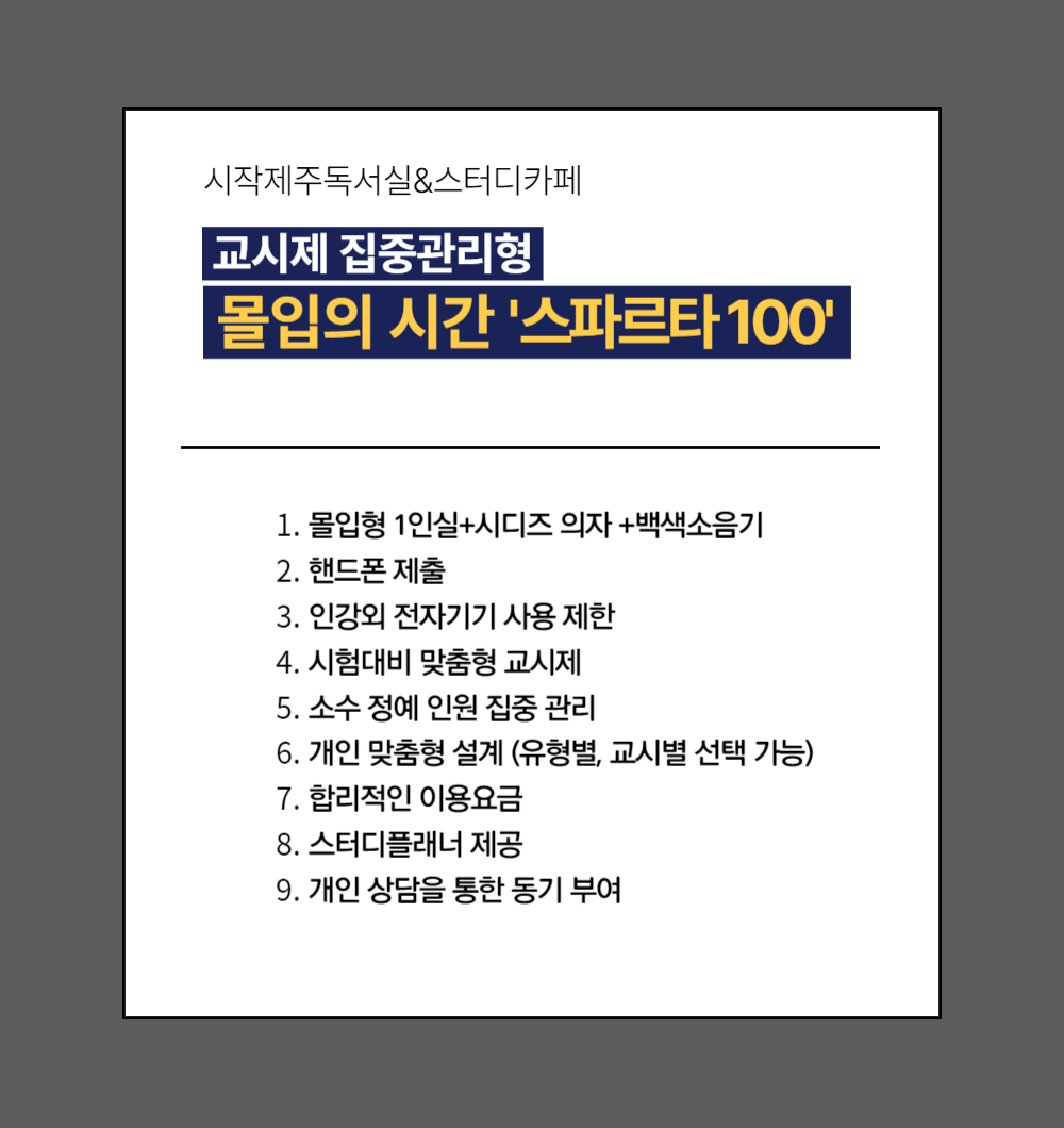있는 시작제주독서실에서 시험당일까지 슬럼프없이 끝까지 열공하여 목표하던 시험에 꼭! 합격하시기를 바라겠습니다 ~♥ #시작제주관리형독서실 #관리형교시시간표 #스파르타100 #마프티 #소수정예관리...