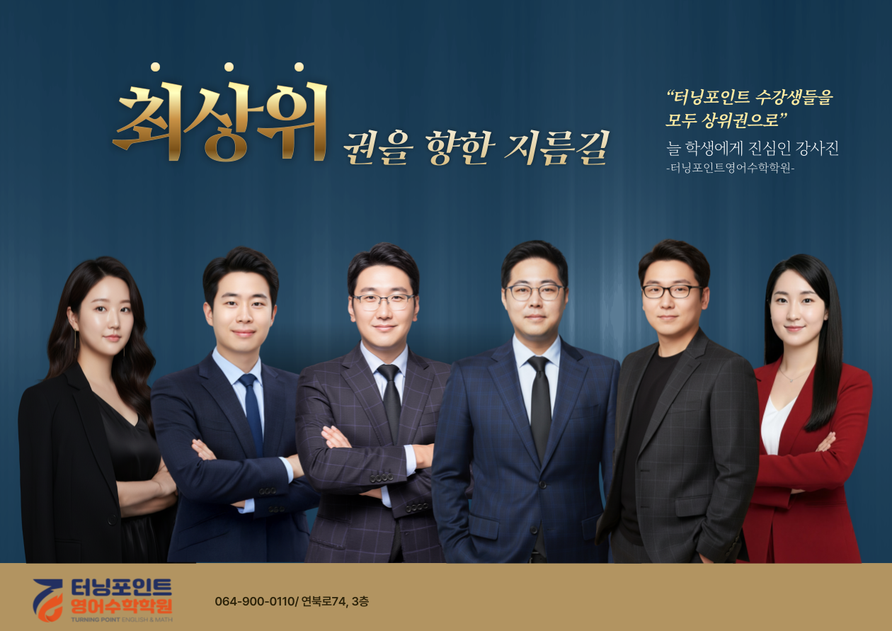 학원 터닝포인트 영수학원 안녕하세요. 최상위권을 위한 지름길 수강생 모두가 상위권이 되는 학원 제주 연동에서 학생들의 성적 반등을 책임지는 제주 연동 터닝포인트 영어 수학학원입니다. 이번...