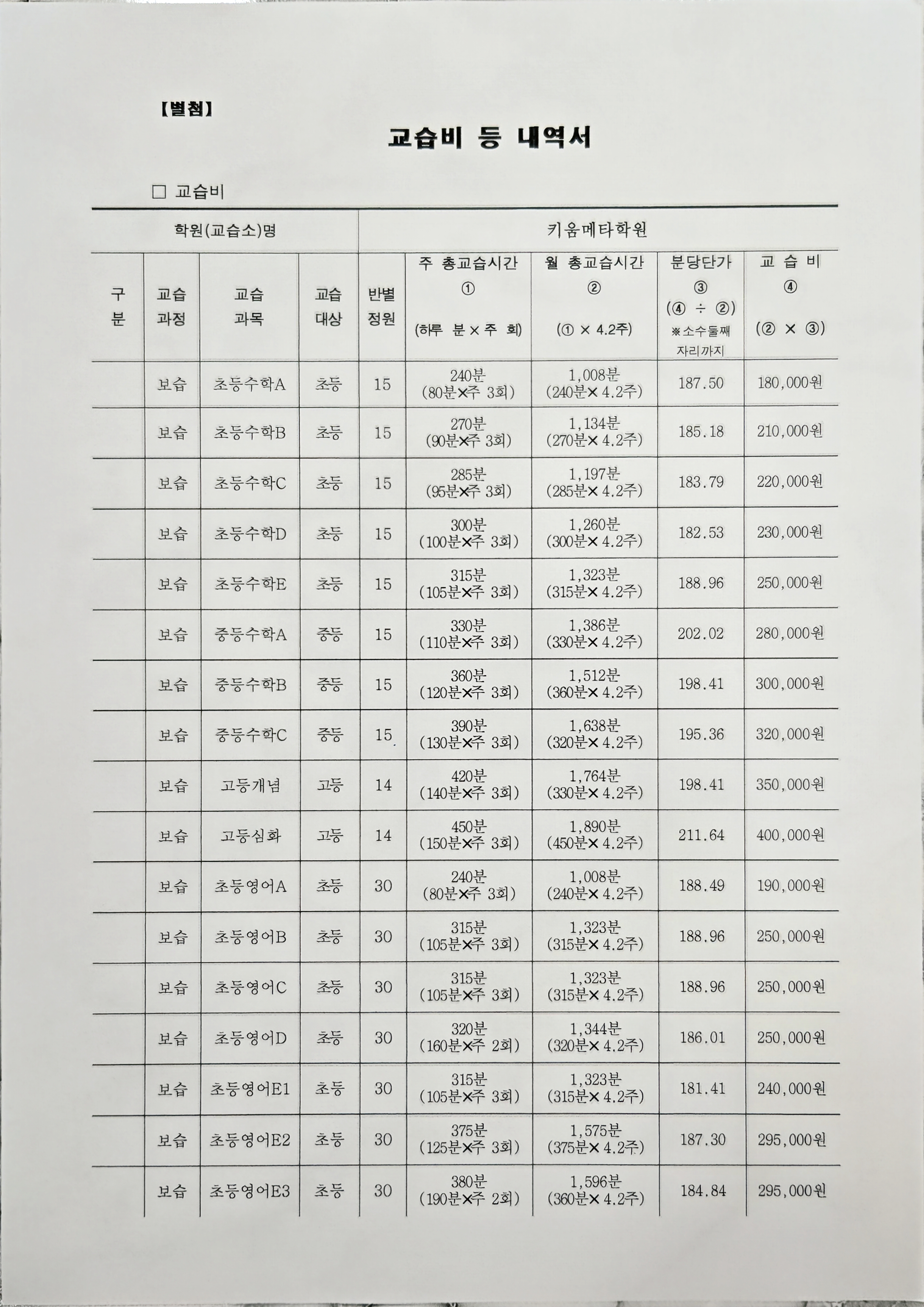 키움메타학원 상세정보