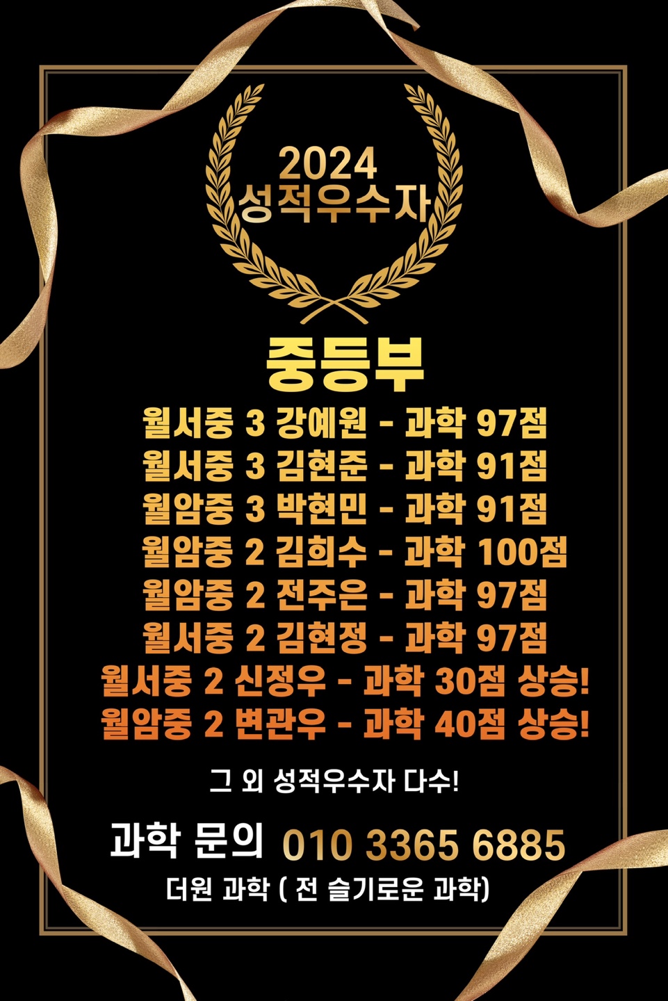 더원수학과학학원 "2025년 대학입학 최종 성적표...