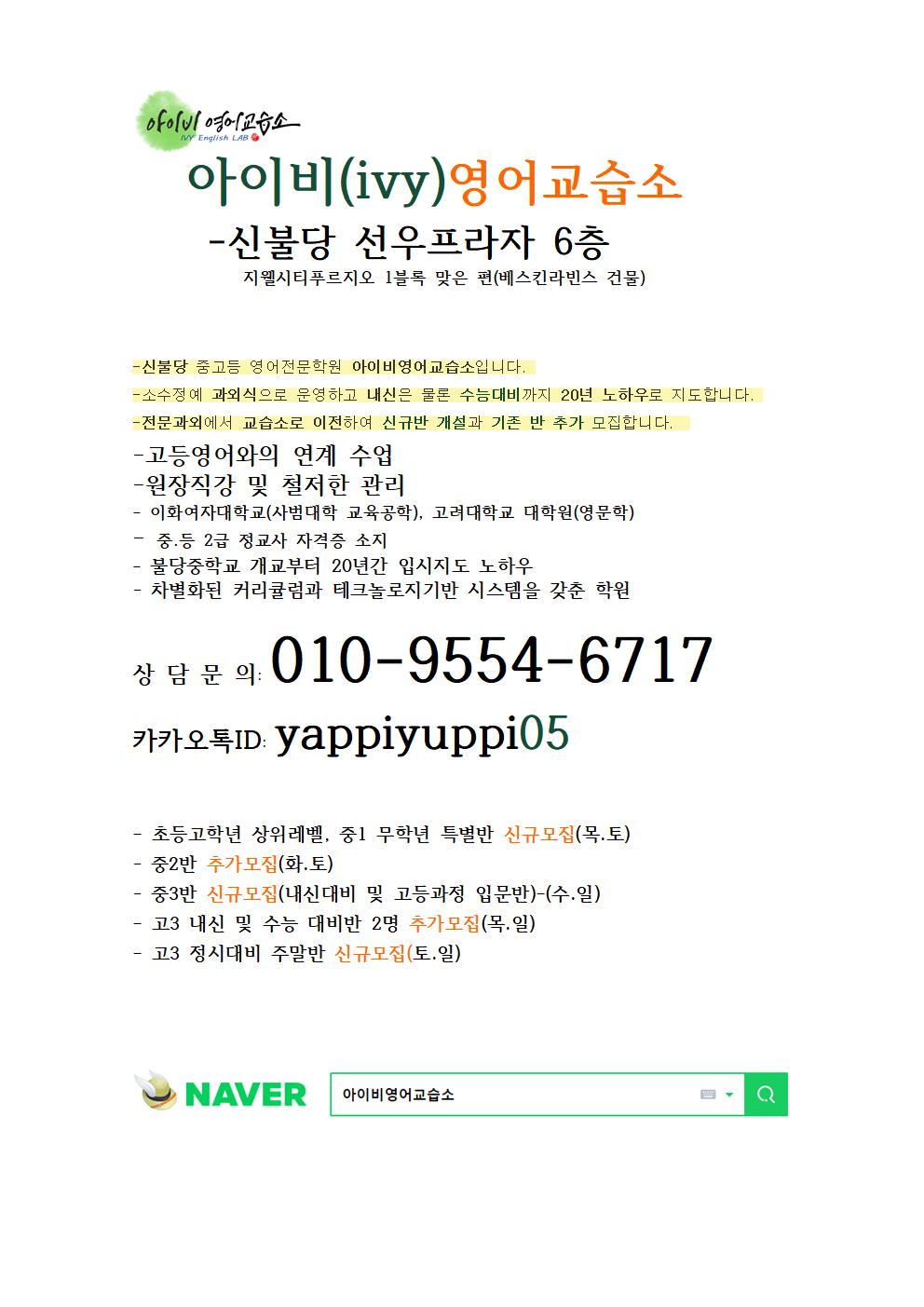 [황남초 앞 영어학원]아이비영어 , 교습소로 확장 이전 합니다.