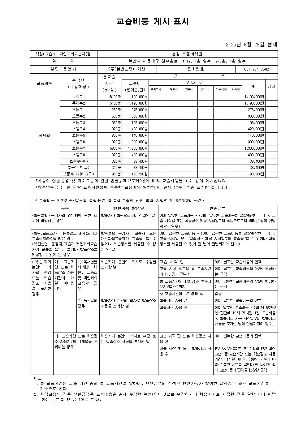 본원해운대코렘어학원 상세정보