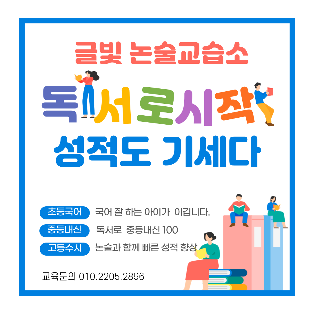 안녕하세요 잠실논술교습소 독락서쾌논술교습소입니다. 저희 교습소는 2025 대한민국교육대상 ‘독서교육 및 학습심리지도 부문’을 수상하며 논술·독서·국어내신 전문 교육을 진행하고 있습니다. 26년 경력의...