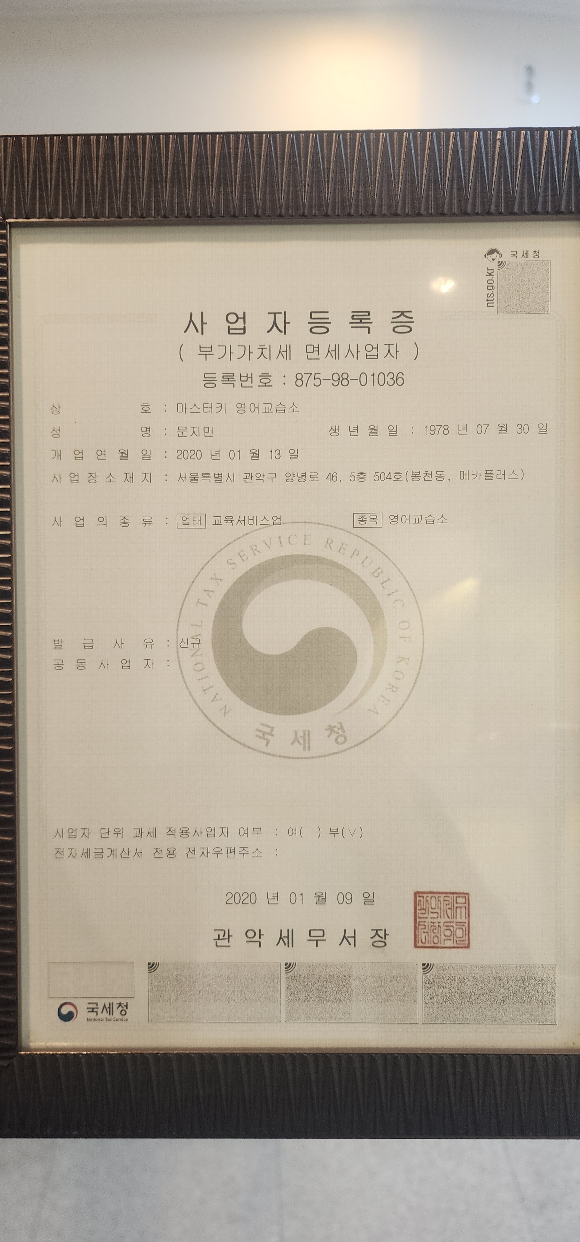 관악구 봉천동 영어학원 영어교습소 마스터키