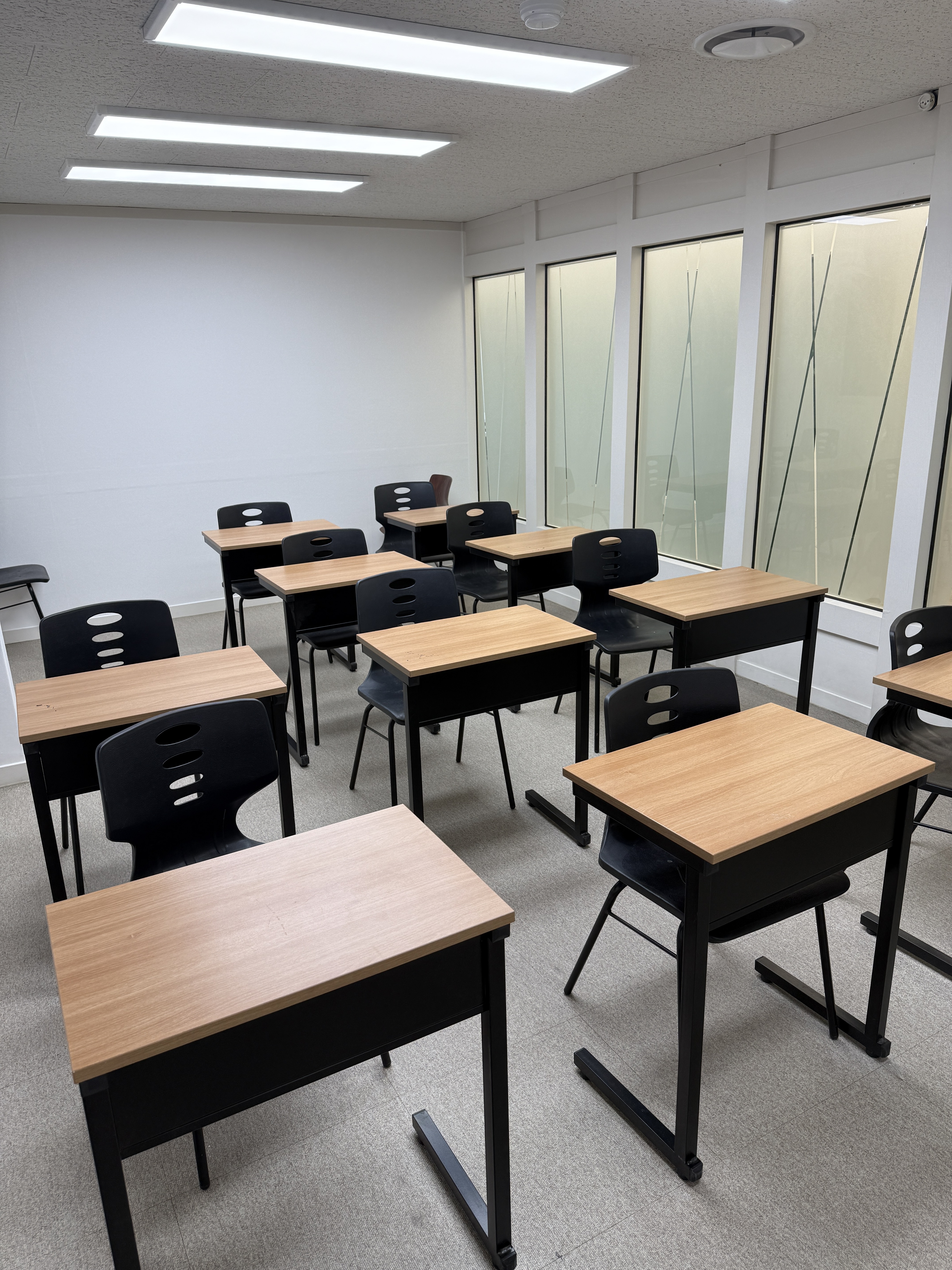 책걸상이 깔끔하게 정돈된 3개의 강의실 모습 ★ 다양한 경력의 수학 선생님 소개 ★ ★ 오랜 경력의 영어 선생님 소개 ★ 카림애비뉴상가 4층 8~9호 위치한 "루미너스 입시학원" 복도 모습 ★ 수학 프로그램...