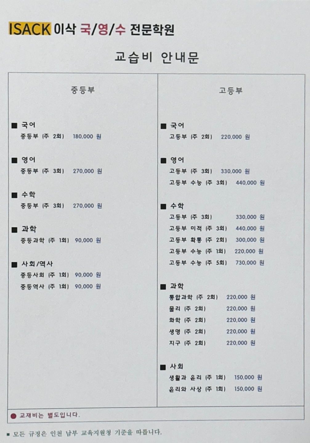 이삭국영수전문학원 상세정보