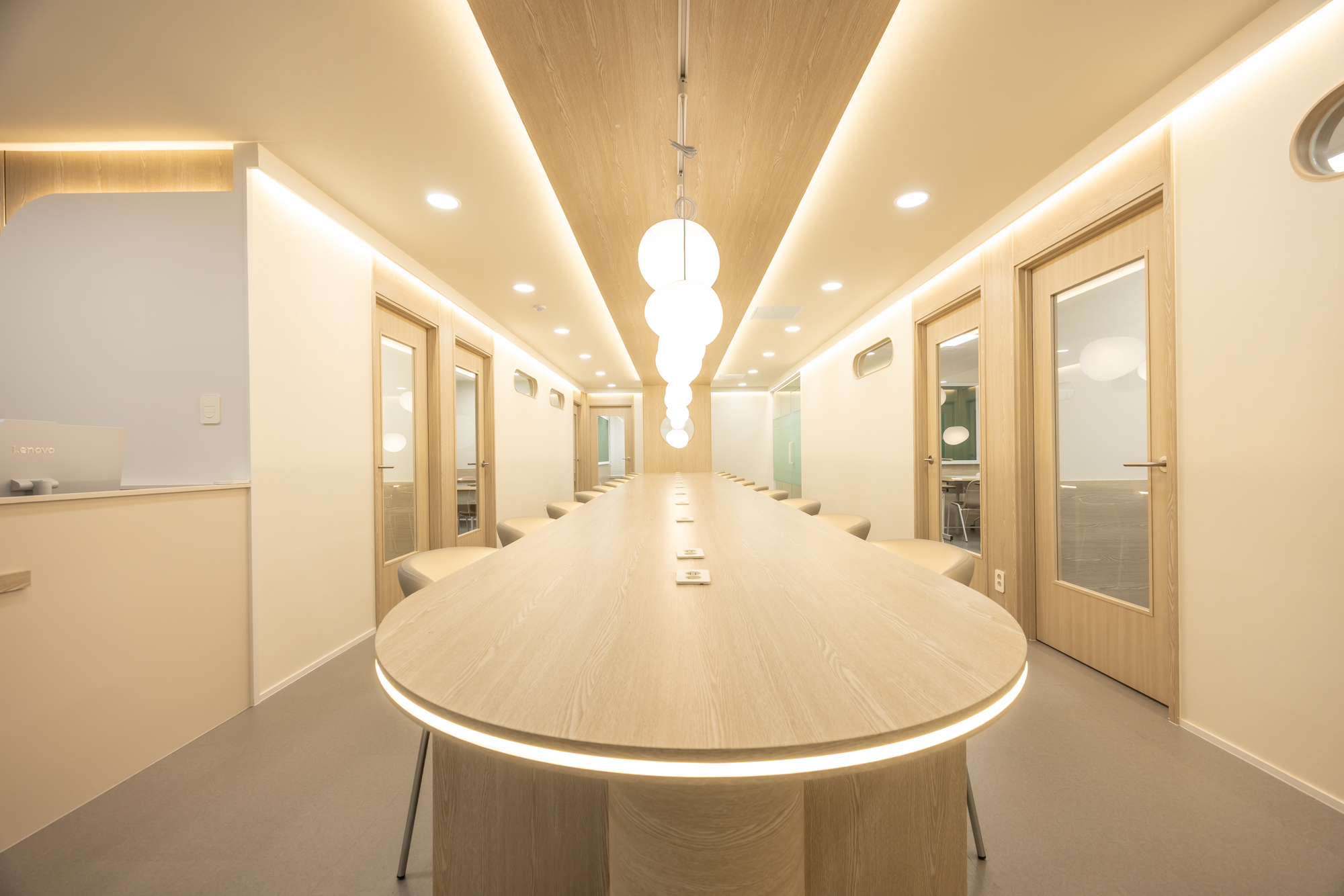 부산인테리어 작업했던 현장은 하단동에 위치하고있으며, 부산 하단 SK뷰타워 58평 수학전문학원... 벽면 일부는 우드 톤 마감재로 처리하고 상부에는 매입등이 내장된 구조물을 시공했습니다. 부산인테리어...