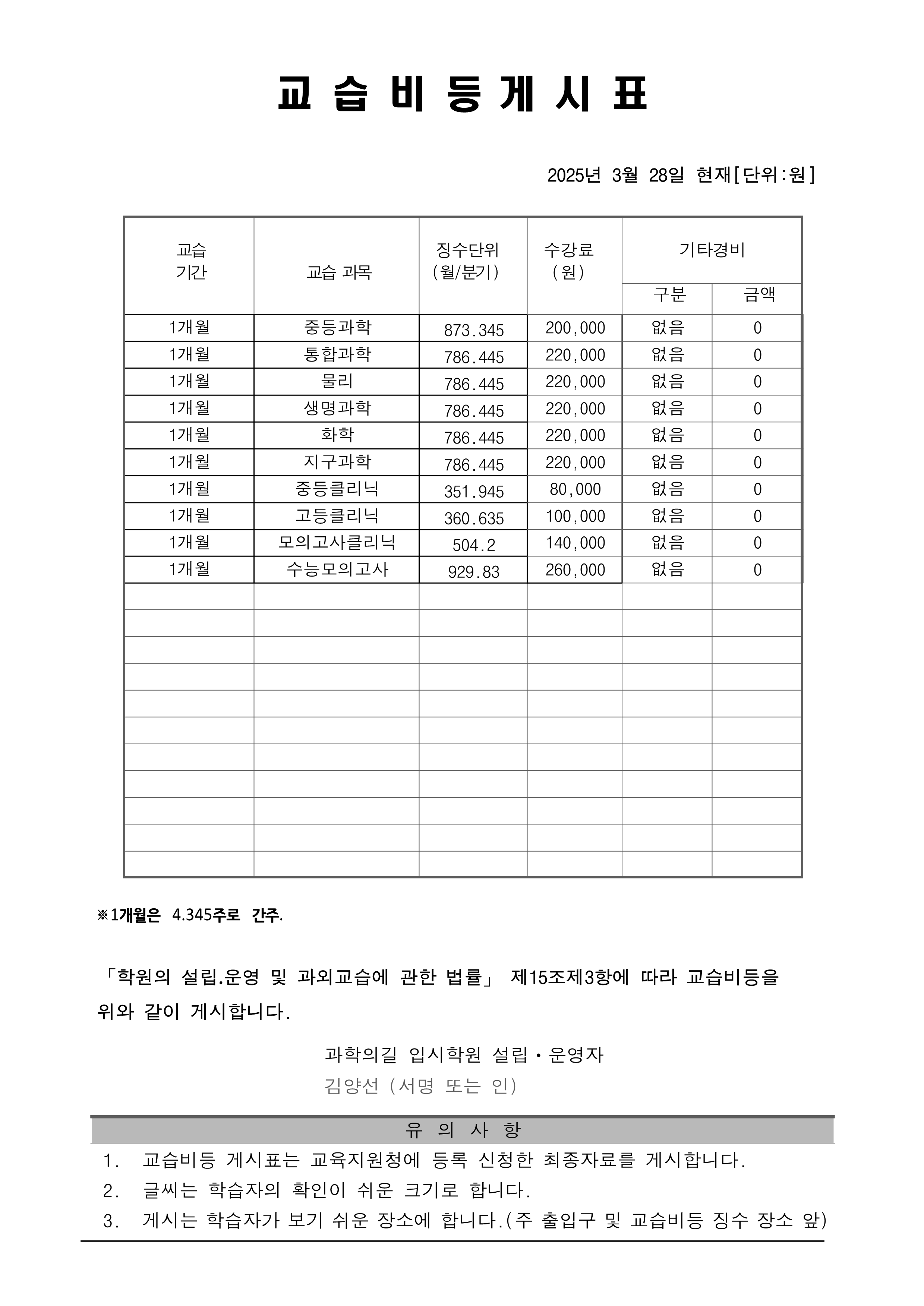 과학의길입시학원 상세정보