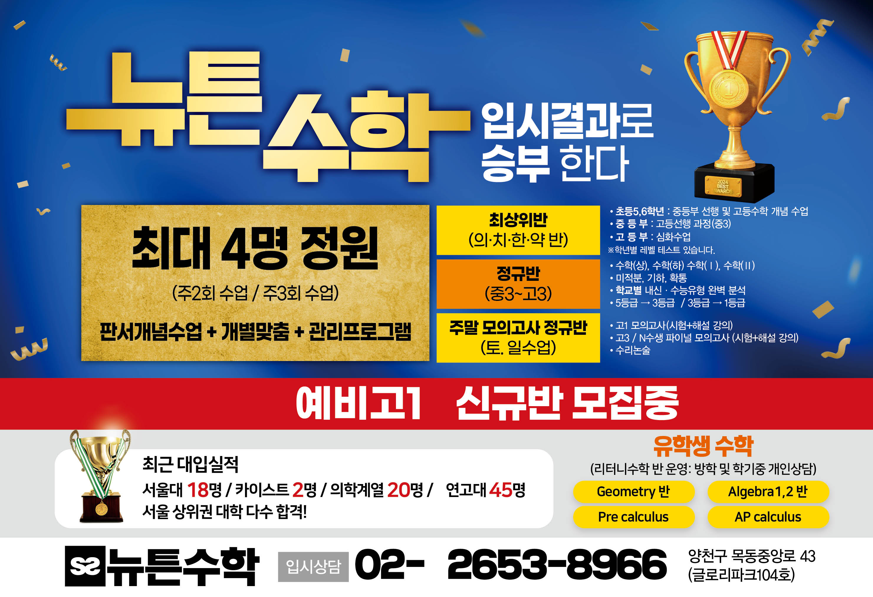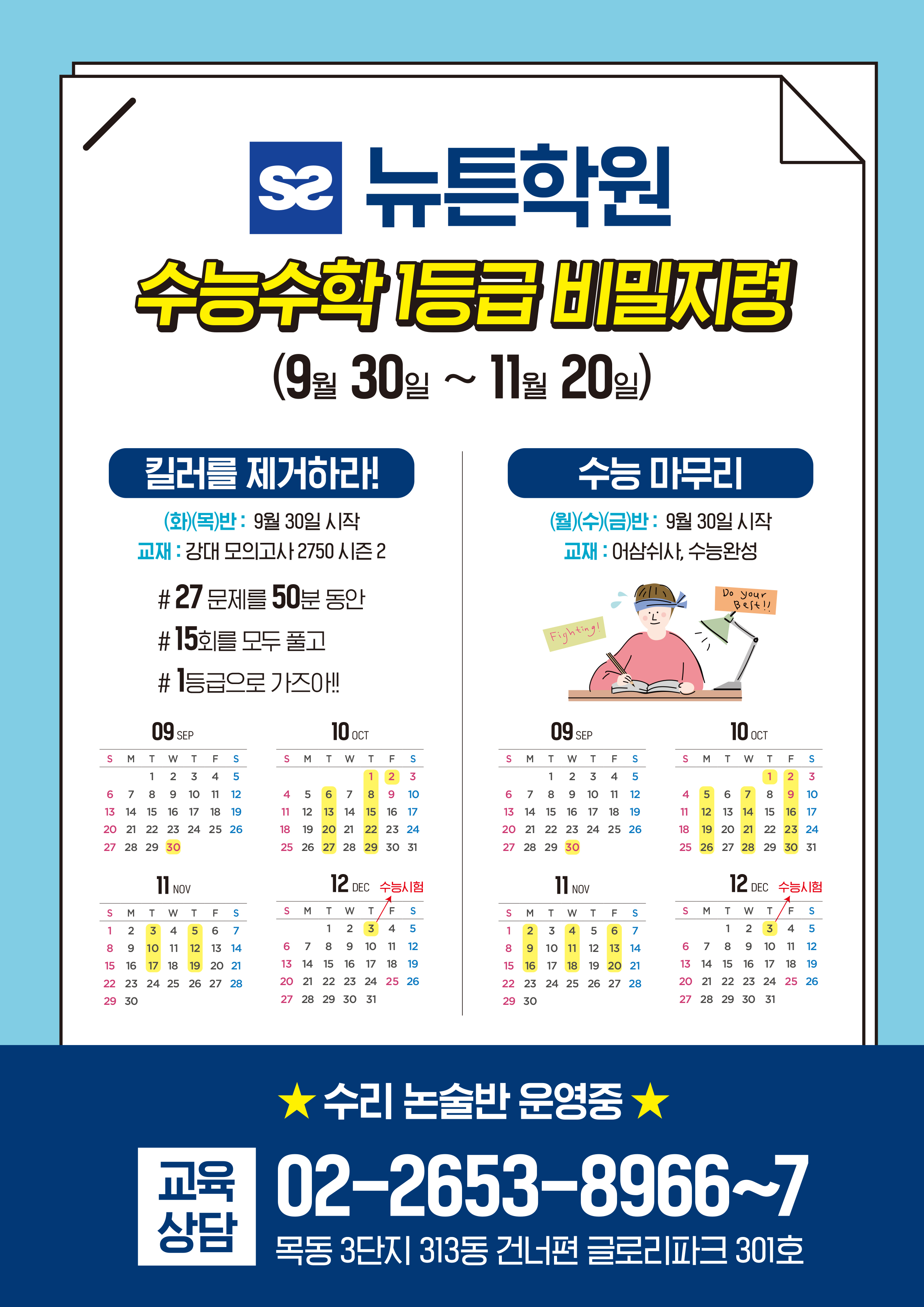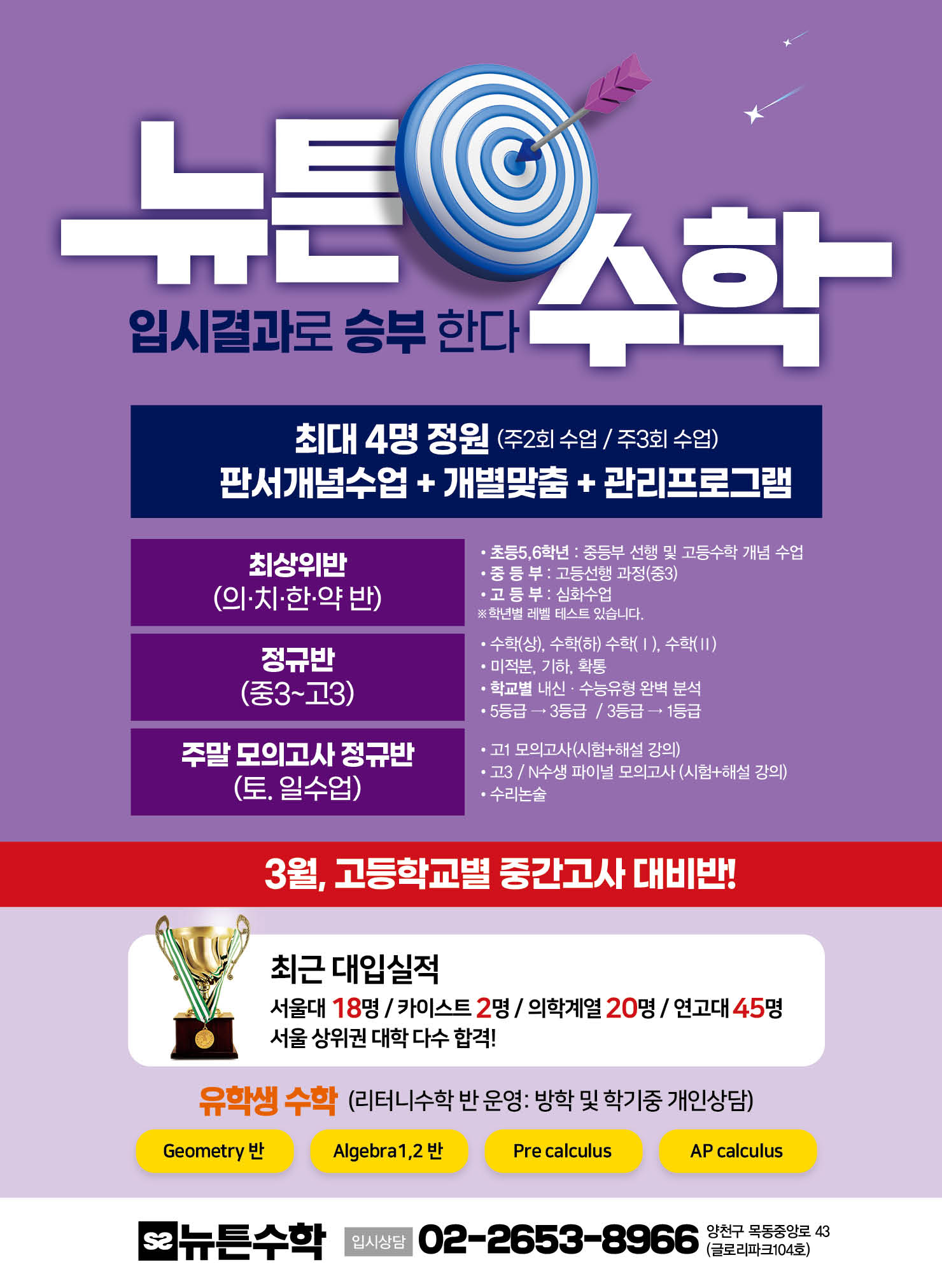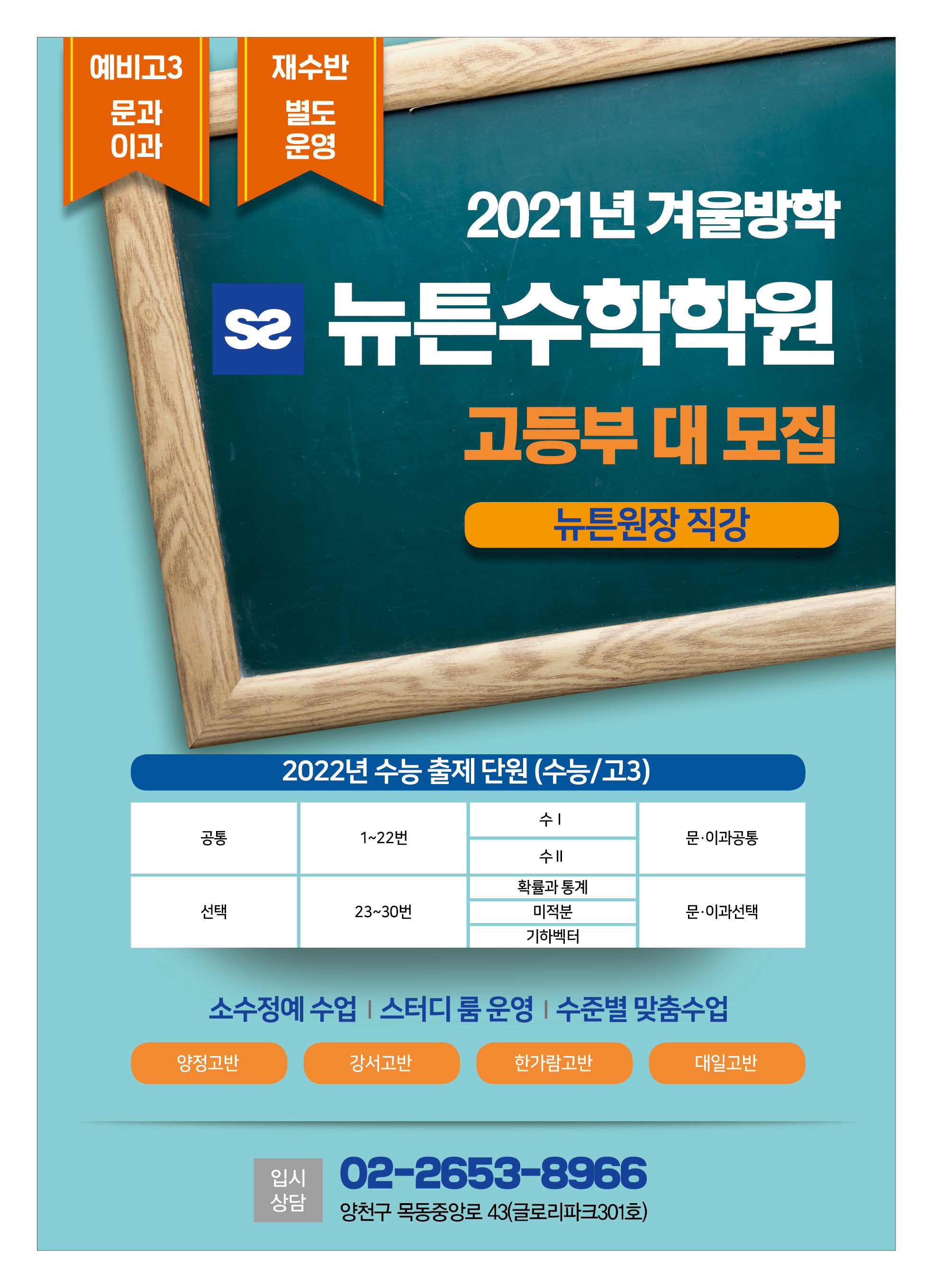 목동 수학교육 / 뉴튼학원 / 비용 시간표 위치 수능대비