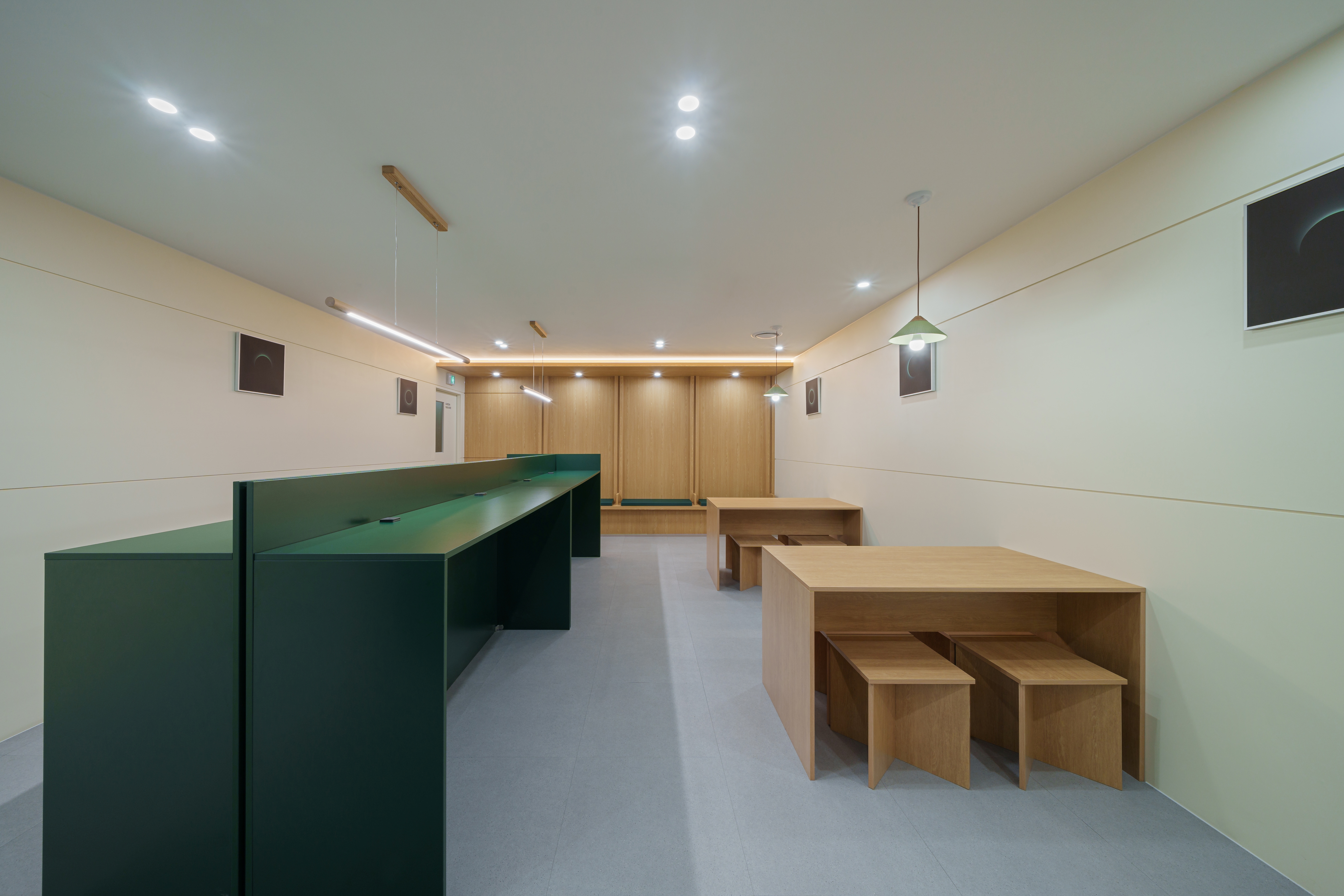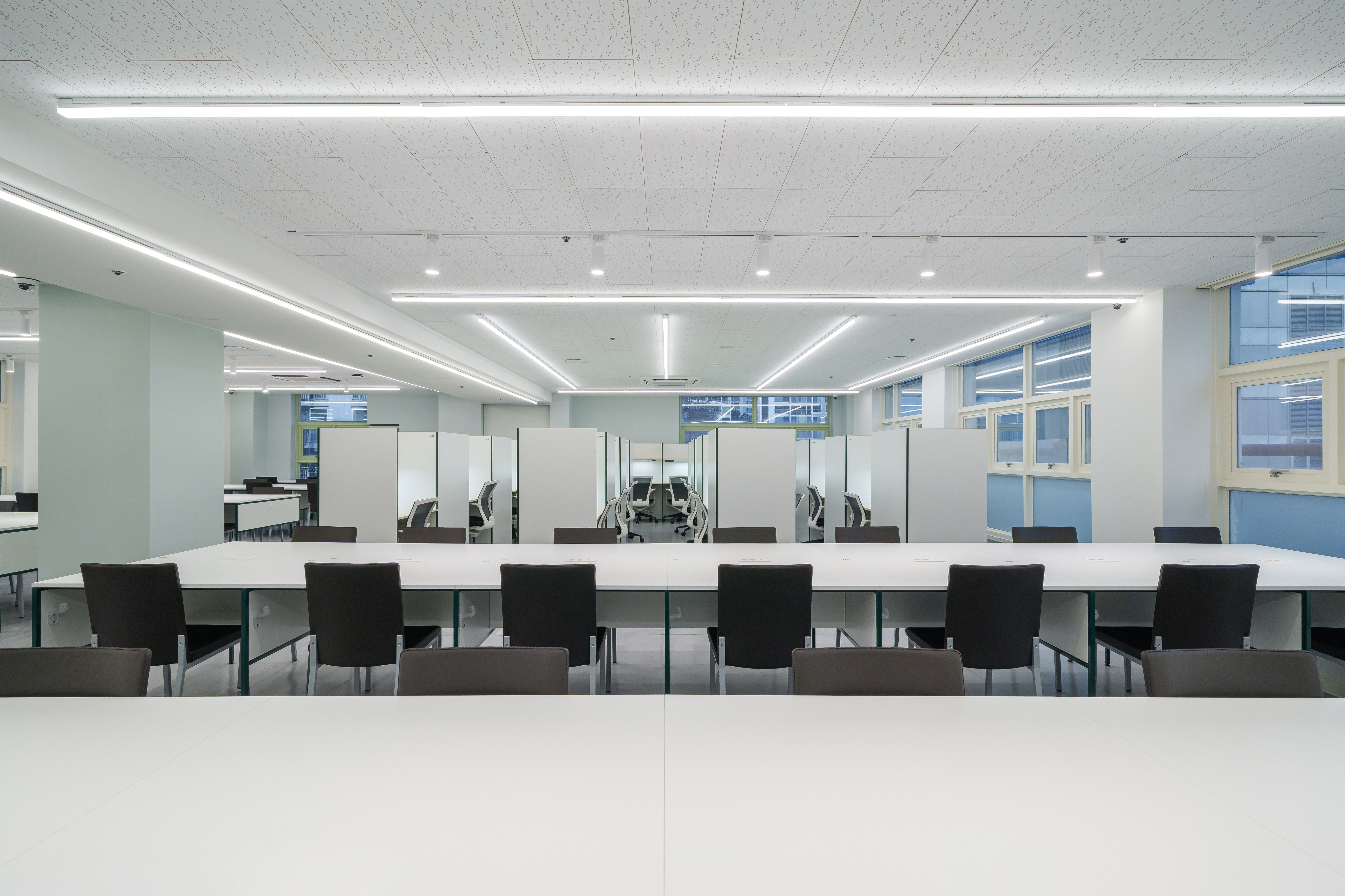 관리형 독서실의 클래스 1,2 공간인데요. 지정석으로 사용되고 높은 칸막이라 주변에 방해 받지 않고 집중 할 수 있어요. 전체적으로 세련되고 깔끔한 공간을 자랑하는 그린램프라이브러리 송도캠퍼스는 그린...